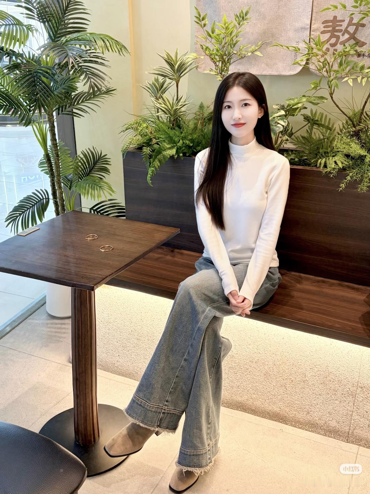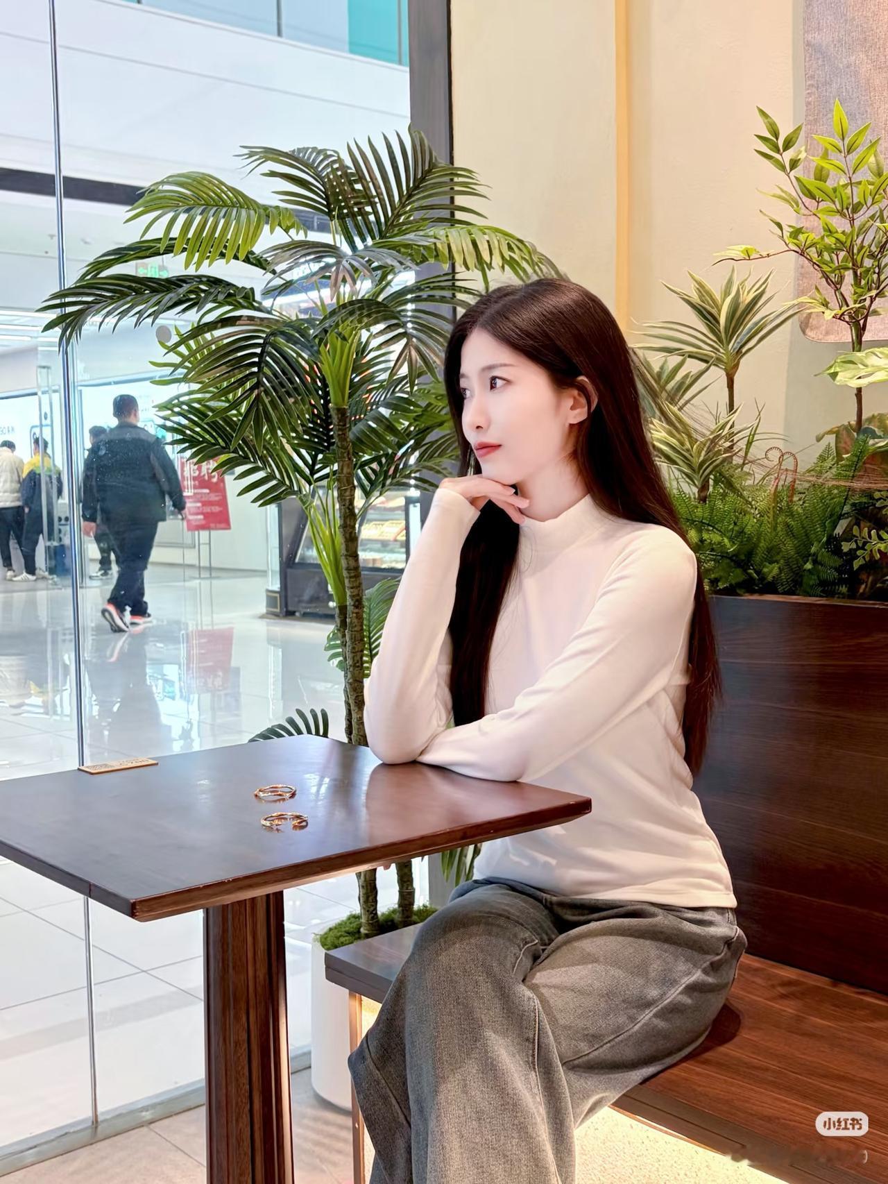 绿植映窗纱,美人倚案坐。