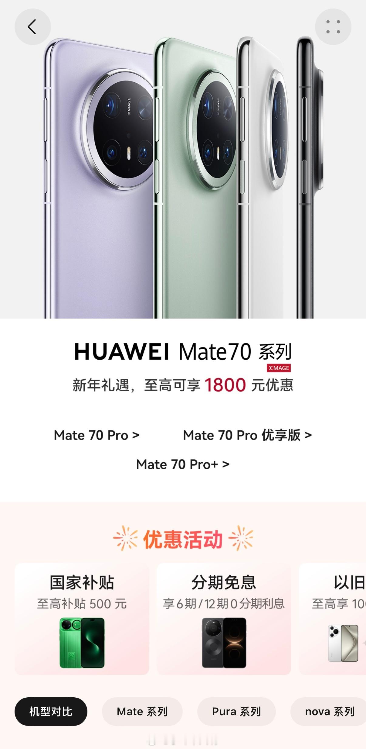 华为春节档福利太给力了!Mate 70 系列便宜了1800块,Pura 80 Pro最高也能省1500块,就问你香不香?华为官网新春优惠最高降价1800元
