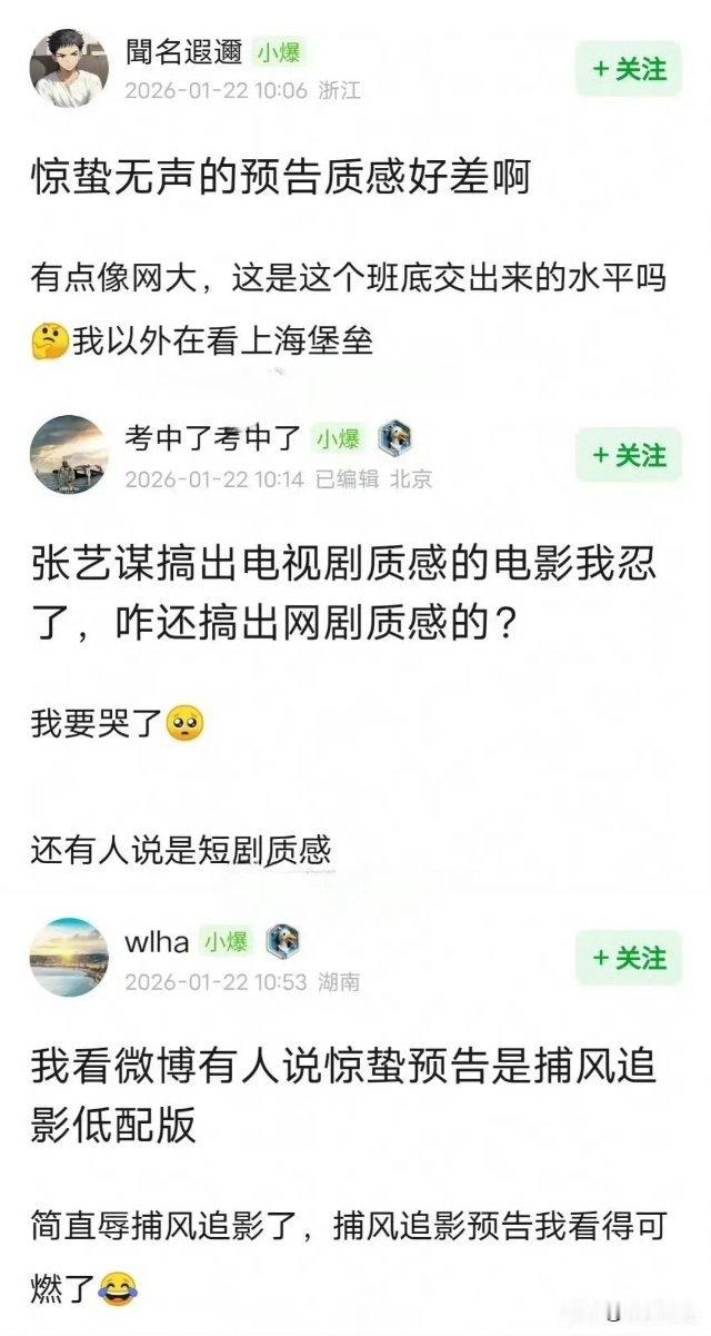 春节档这几部片子里,《惊蛰无声》是不是有点悬啊?你看它那预告片,跟《镖人》比起来,差得可不是一星半点,甚至有网友说看了想起《上海堡垒》,这评价可不算好。虽说有易烊千玺、朱一龙这些大明星撑场面,阵容够强,但要是剧情不过关,观众怕是也不买账,毕竟大家进影院是看故事的,不是光看脸的。现在春节档定了三部:沈腾的《飞驰人生3》,有前两部的底子在,加上沈腾的喜剧号召力,票房肯定差不了;吴京的《镖人》,光看预告片就挺让人期待,赢面不小。就《惊蛰无声》,这全明星阵仗,倒让人想起今年的《酱园弄》,但愿别落个票房太难看的下场吧。说到底,电影最终还是得靠内容说话,阵容再强,撑不起拉垮的剧情,也白搭。