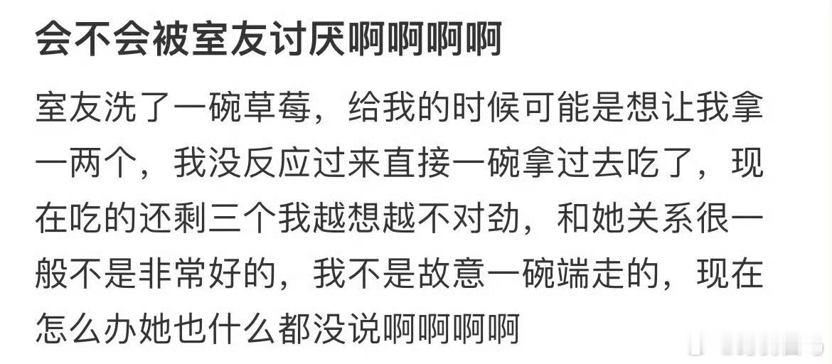 室友洗了一碗草莓,我一开始以为是全部给我的,我没想就拿走了室友会不会讨厌我啊 草莓剥皮