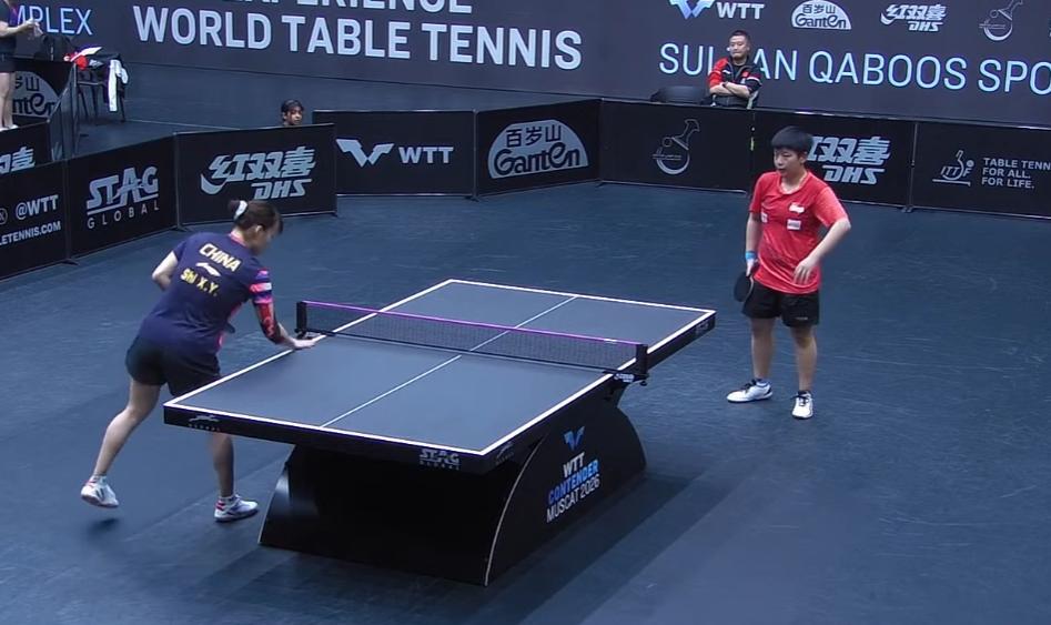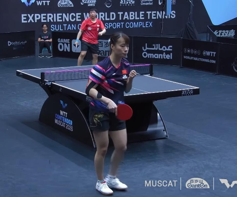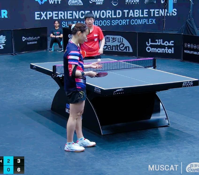 终于见到了蒯曼传说中的教练张长弓, 邱贻可得男双搭档, 也是左手球员。 这次也来马斯喀特常规赛磨合了, 指导的石洵瑶不错, 3:0 第一局 石洵瑶11:6拿下 第二局 石洵瑶7:0开局 11:2拿下 第三局 曾尖6:3领先, 10:7拿到局点, 石洵瑶追到10:10, 曾尖11;10领先的时候, 石洵瑶衣服坏了。 换回衣服, 石洵瑶状态好了很多, 最后15:13拿下。