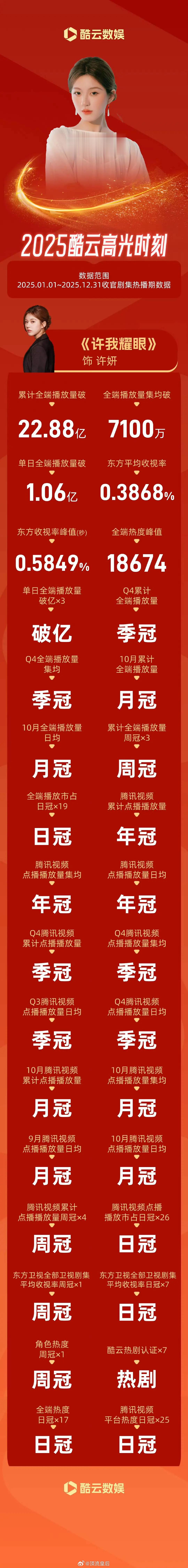 赵露思2025酷云个人专属战报来啦,耀眼露思。