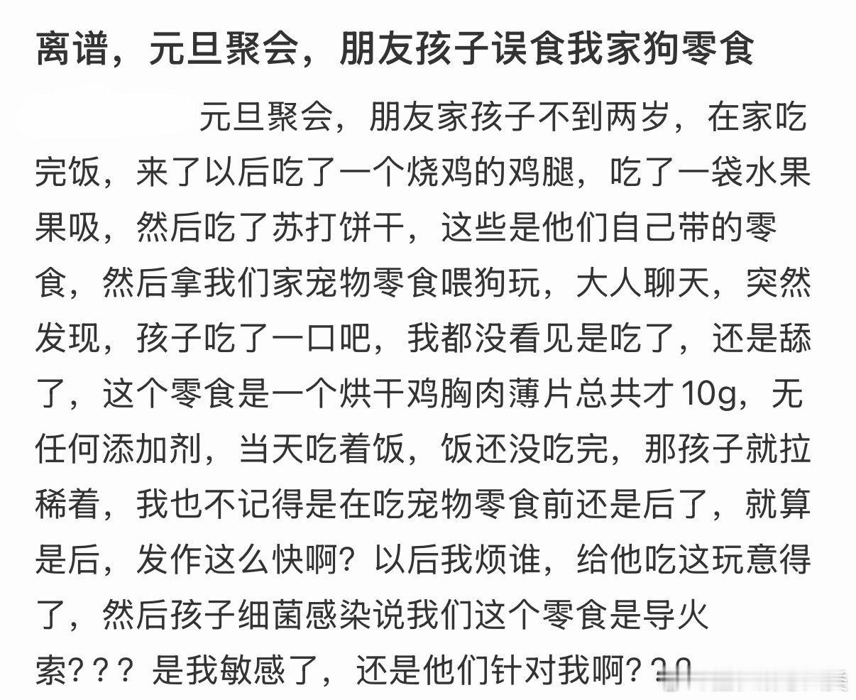 元旦聚会时,朋友的孩子误食了我的狗零食。