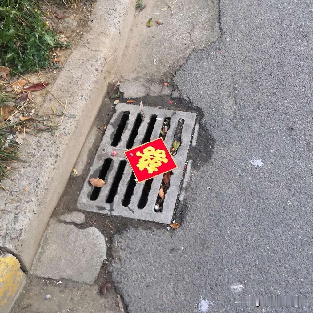 小区清晨办喜事,阴沟盖上粘贴喜字,原来背后藏着如此暖心的讲究! 清晨8点,出门遛狗,路过小区门洞,远远就被一片红彤彤的喜字暖到了心窝!楼门口高挂着红灯笼,墙壁两侧张贴着双喜,当真是双喜临门。 就连路边的阴沟盖上,也都整整齐齐地贴满了双喜字,一个都没落下。 起初,我满心疑惑,大喜之日,为何不把喜字贴在显眼处,反倒贴在这毫不起眼的井盖之上?这究竟是什么讲究呢? 询问了邻居后才得知,这是老辈传下来的习俗。井盖连通污水、藏着“晦气”,贴上喜字便是“压井盖、挡缺口”,寓意着把所有不顺心、不如意都统统压住,让新人婚后的日子顺风顺水、红红火火。 这看似微不足道的小事,实则蕴含着家人最朴素的祝福。一张小小的红喜字,不仅装点了整个小区,更让喜气弥漫到每一个角落。 愿这对新人带着这份细腻的祝福,往后的日子红红火火,顺顺当当,幸福长长久久,四季皆盈欢喜! 新人