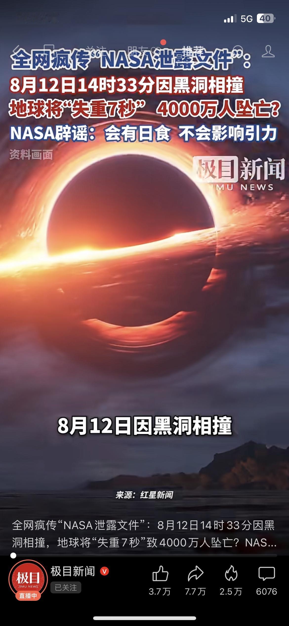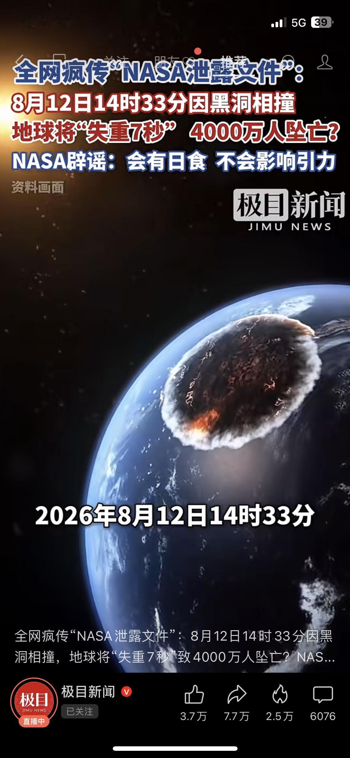 失重7秒致4000万人坠亡? 这离谱谣言直接被NASA实锤打脸!近期网传日食会引发地球引力消失,出现7秒失重导致大规模坠亡,看得人心里发慌,不少人还被身边亲友追问真假。NASA官方紧急辟谣,明确表示日食只是天体运行的正常现象,根本不会影响地球引力,这类谣言毫无科学依据。别再被不实信息带节奏,也提醒家人朋友别轻信转发!你刷到过这个无脑谣言吗?有没有被问过真假?科普辟谣