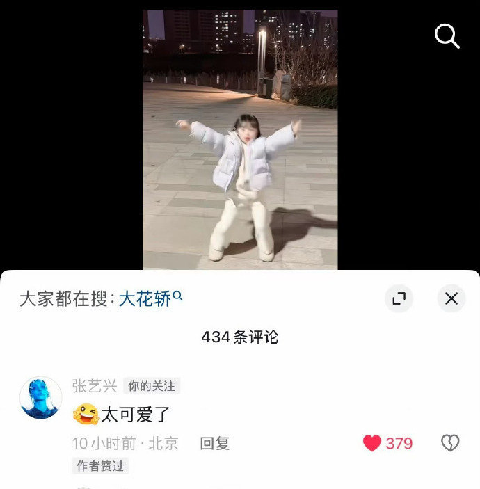 张艺兴把抖音玩成了朋友圈,在各大cha大花轿的视频底下评论!
