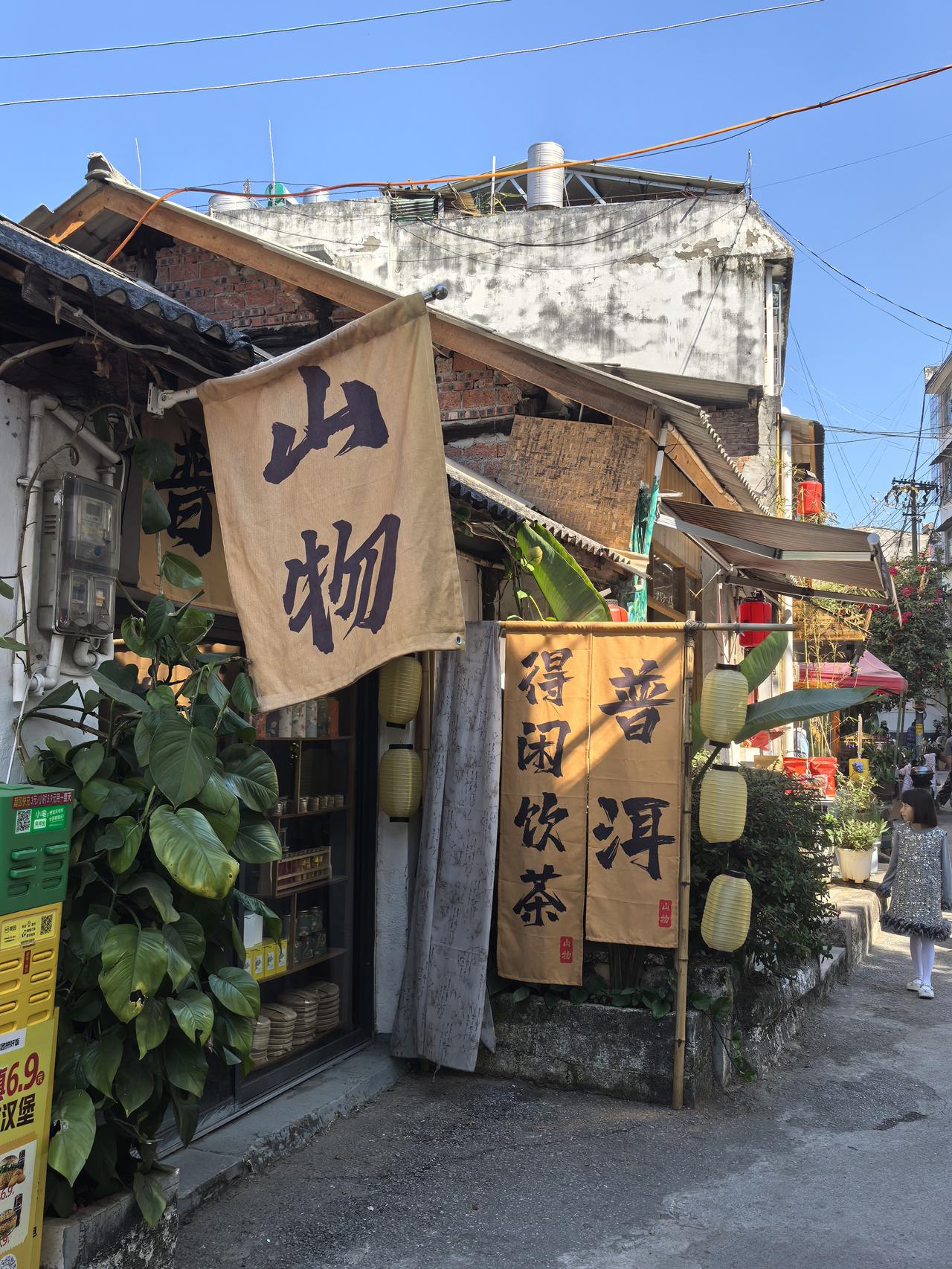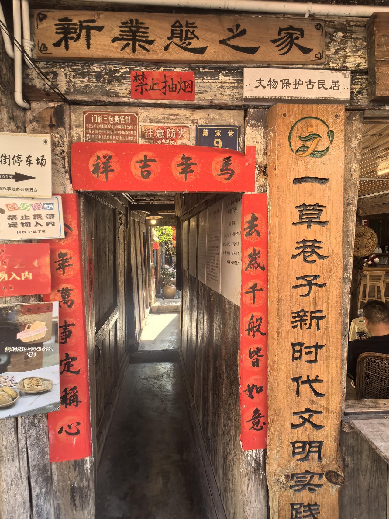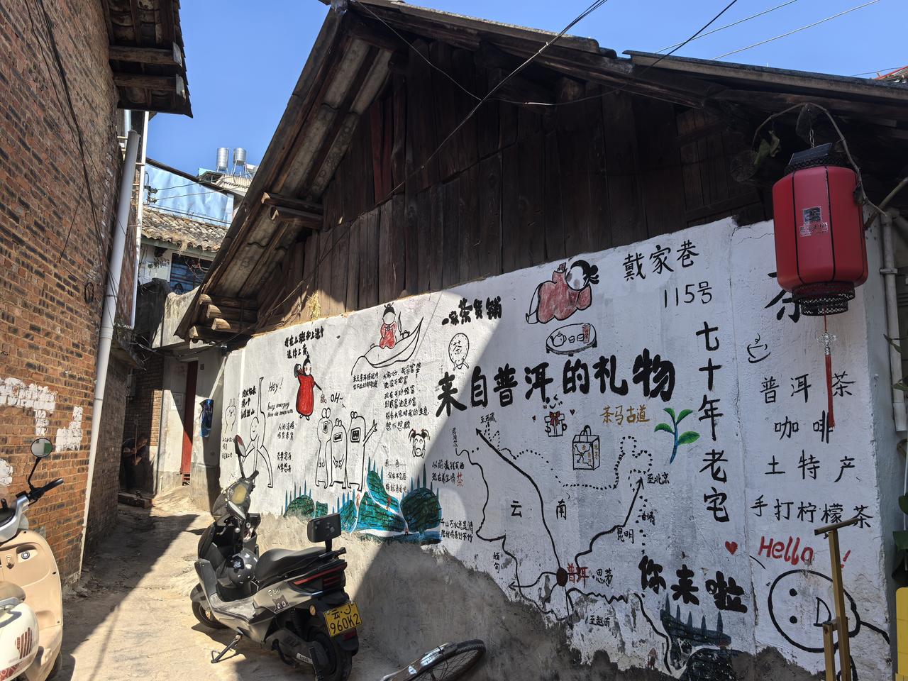 普洱戴家巷:偷得浮生半日闲 今天午后,因爱人想休息,我一个人从营地打车,去了普洱戴家巷。 戴家巷和我想象的不一样。巷子不长,几分钟时间就逛完了。巷子两边以咖啡店和茶馆居多,可以说是"三步一咖啡、五步一茶馆"不为过。每一家都各有特点,我选择了一家叫多嚞咖啡店的,坐了下来,要了一杯“孟连冰冲草莓奶油咖啡,在小院一边品尝咖啡,一边晒太阳。享受慢下来的时光,真好! 巷子的游人不多,商业化气息不是很浓。巷子虽然不长,但对古街道上的建筑保护得很好,斑驳砖墙、古老窗棂等历史痕迹依然可见。 看了介绍,才知道,戴家巷始建于18世纪,原名儒林街,是清朝思茅厅(普洱府辖区)的核心商贸区,因戴姓家族聚居而得名。 巷内现存9间砖木结构老宅,是思茅区仅存的古街道店铺建筑群落。它曾是商贾云集的重镇,也是茶马古道的重要驿站。 从咖啡店出来,看着街巷流动的岁月,和那些旧墙砖瓦上被定格的痕迹,让我从戴家巷的时光皱褶里,仿佛看见了,曾经上演的曲折而又精彩的故事。
