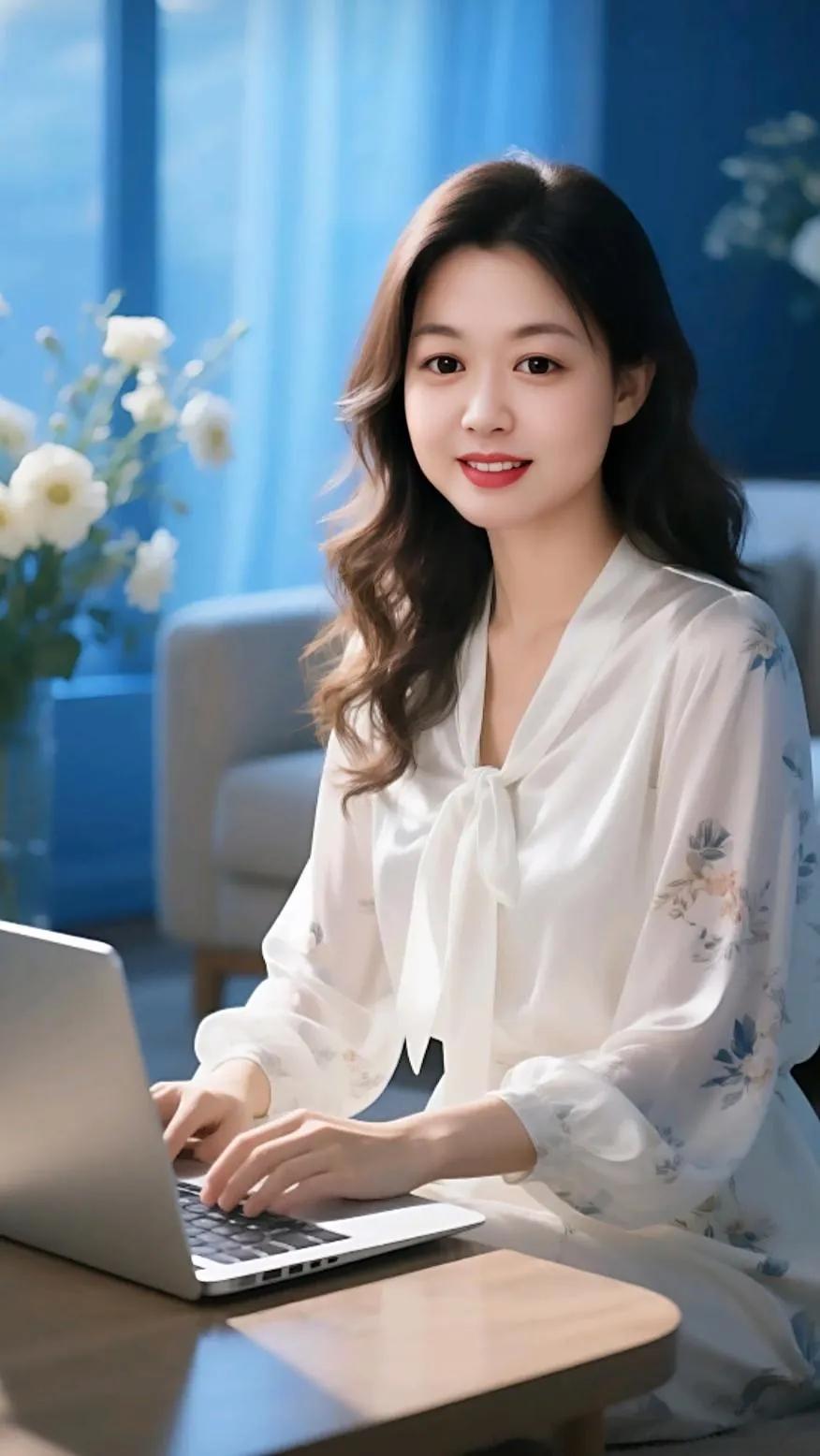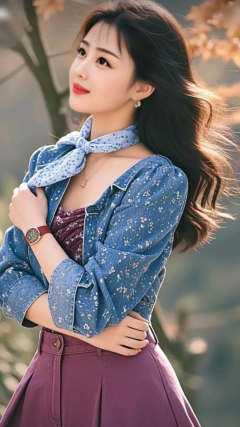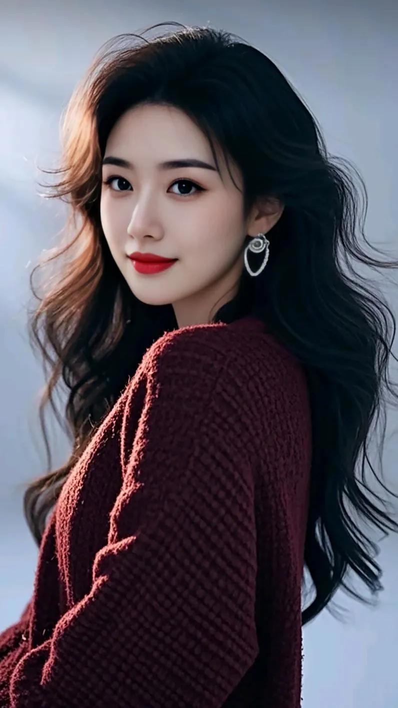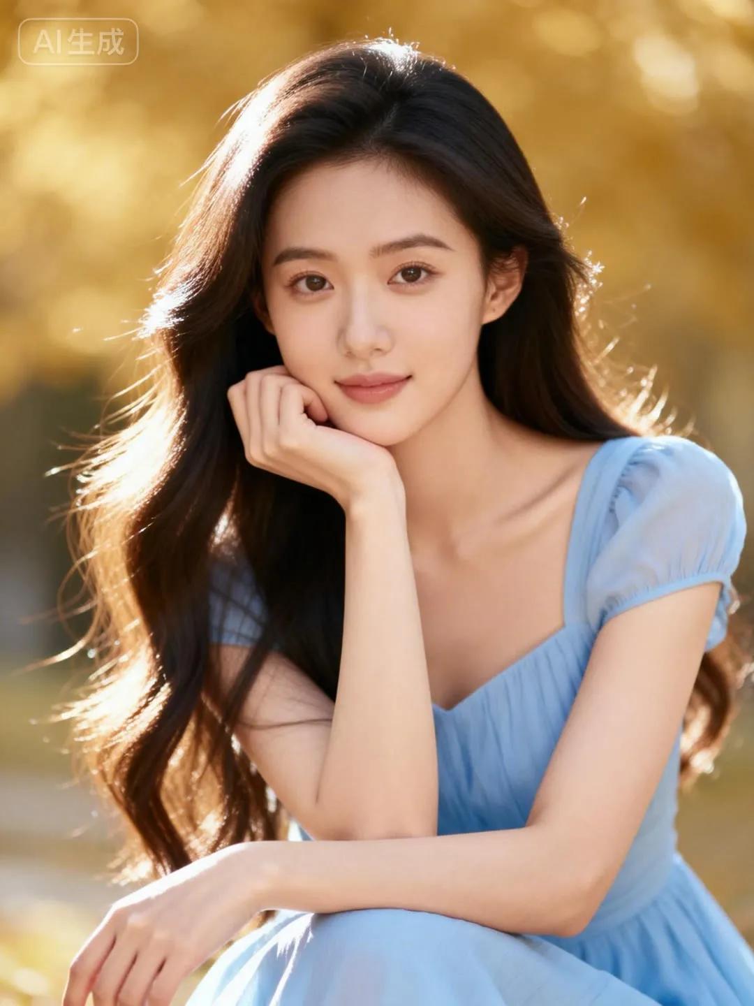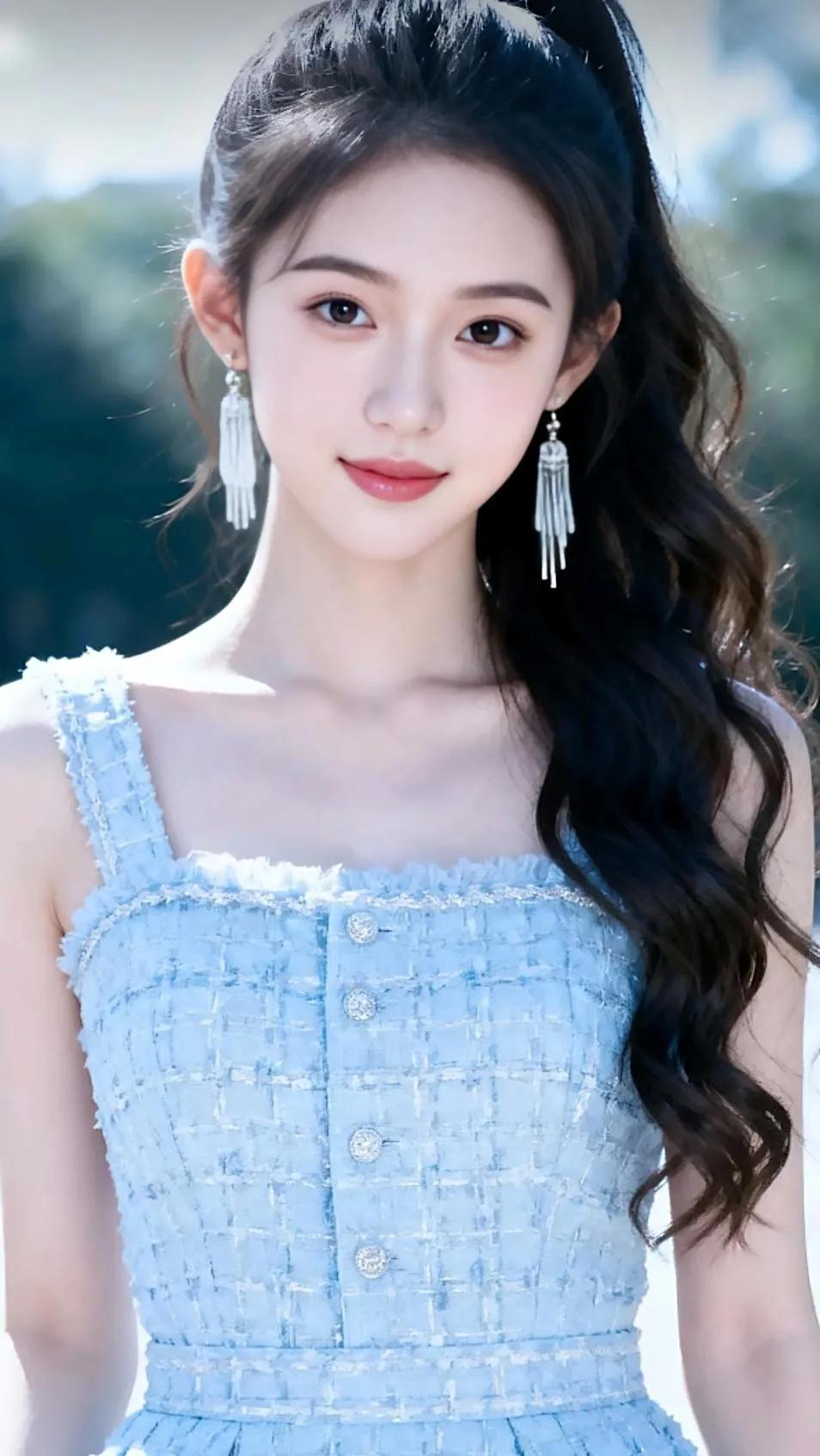 梦幻少女风,优雅蓝裙,甜美红唇,复古背景,仙女范十足!💖🌹👗