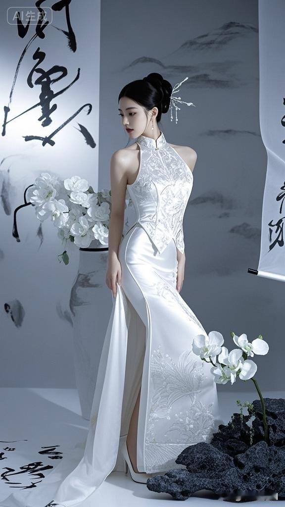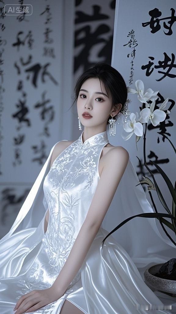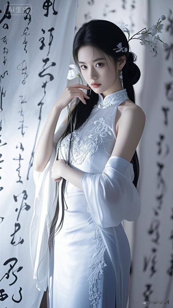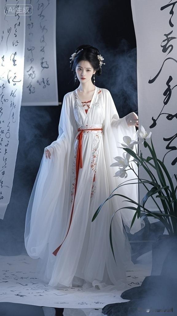 古风美人,花间仙子,一袭白衣,宛如画中人。