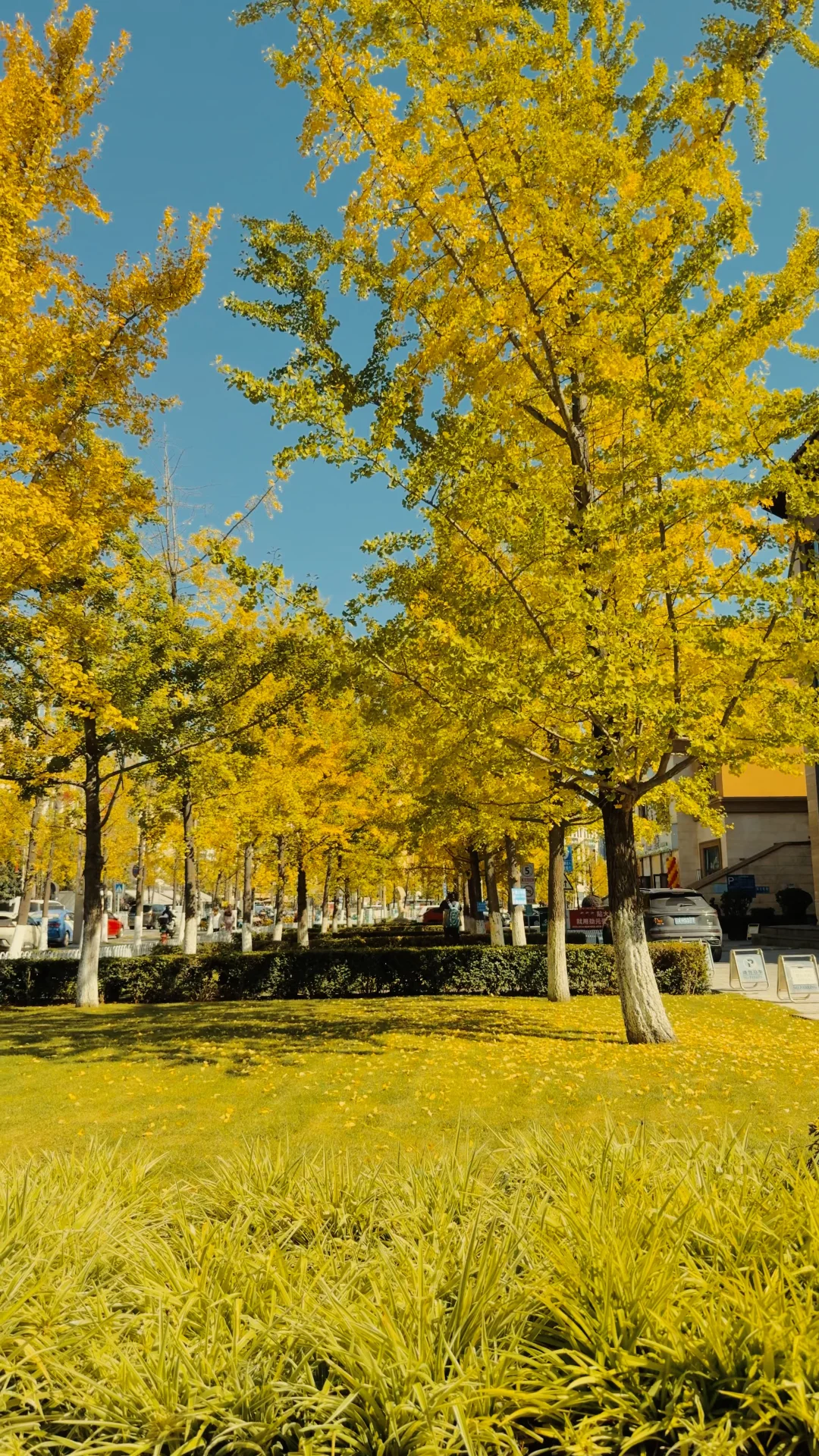 秋日限定浪漫🍁 金黄银杏配夕阳,踩落叶漫步如入油画,同框画面氛围感封神。