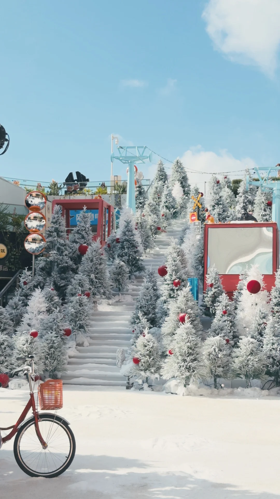 人工降雪搭星星灯❄️红白色穿搭可以拍出韩剧女主同款。
