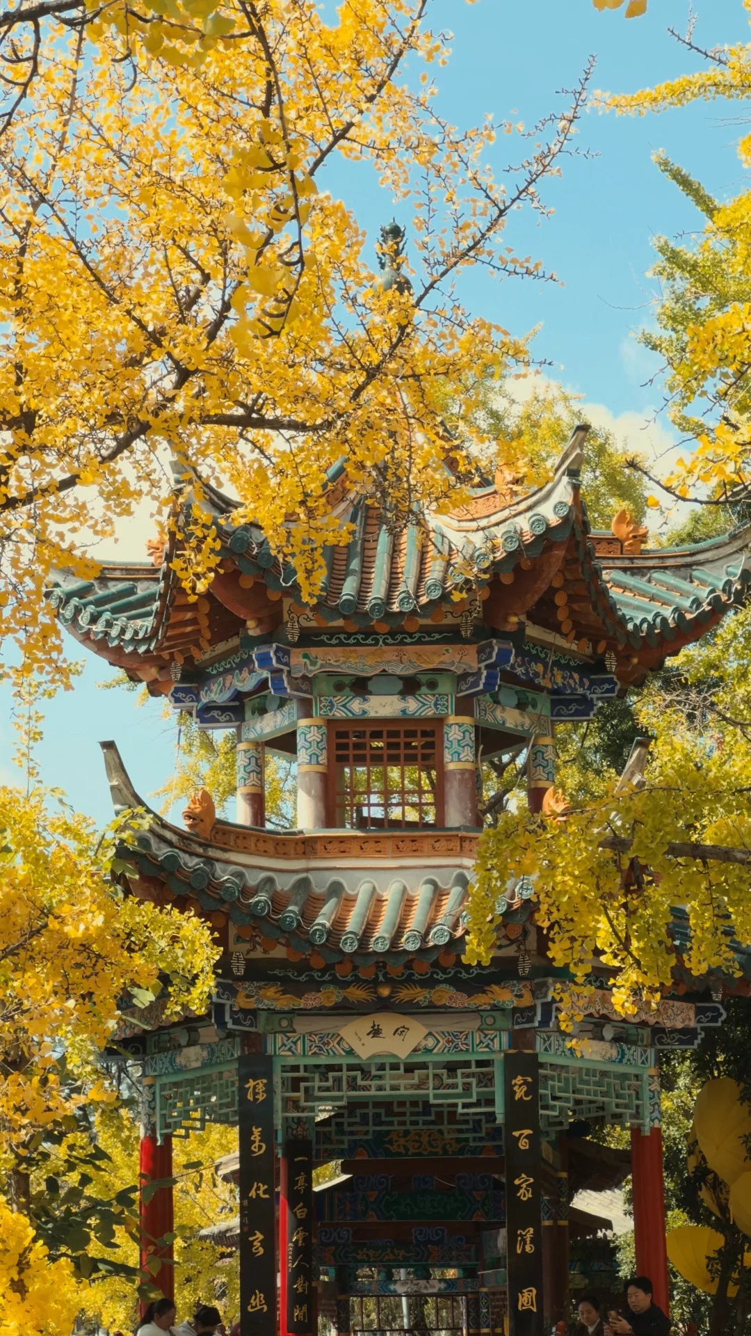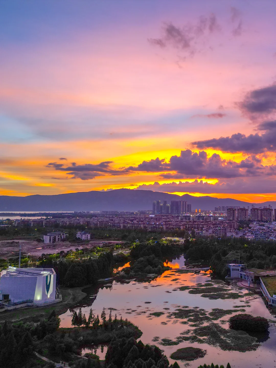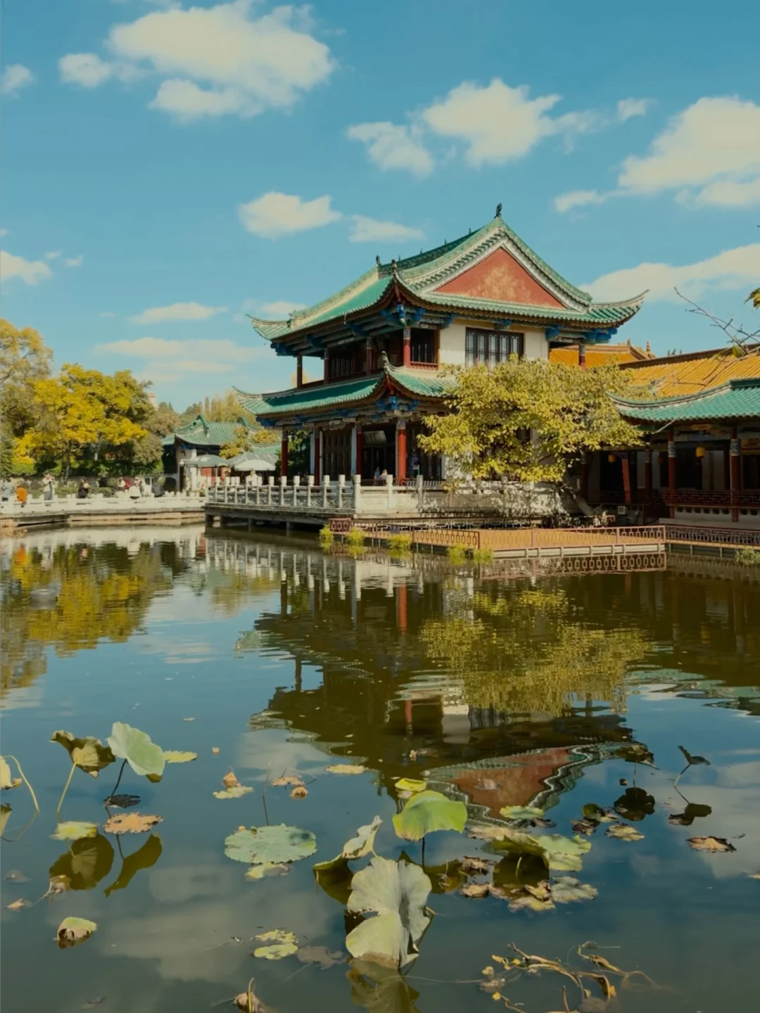 夕阳给古建筑镀金边,与海鸥、银杏湖光相映,沿湖漫步感受老昆明慢生活。