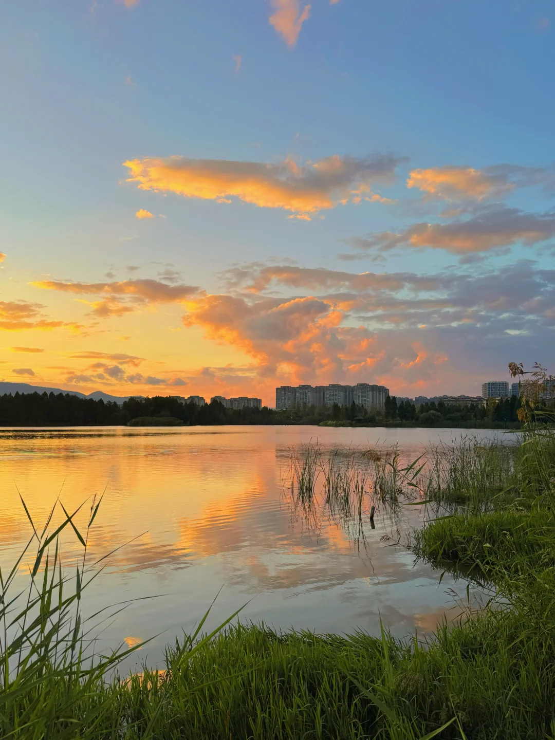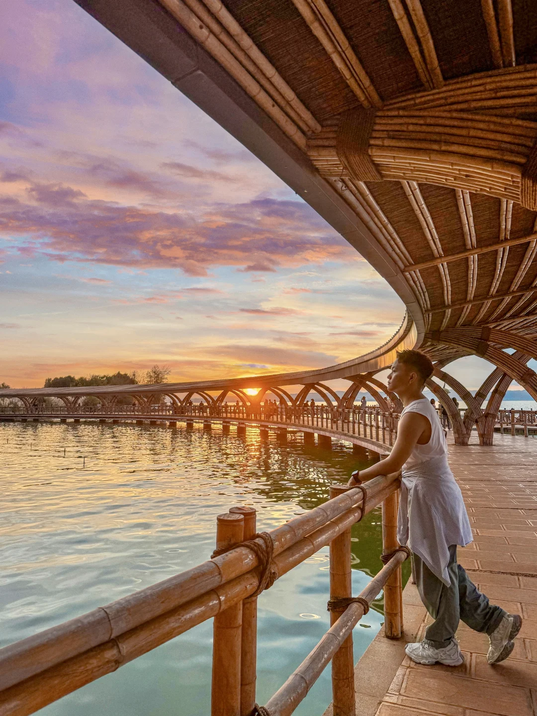 滇池畔落日长卷🌊 茅草屋、栈桥是绝佳机位,霞光漫过芦苇荡,坐等一场完整日落超惬意。