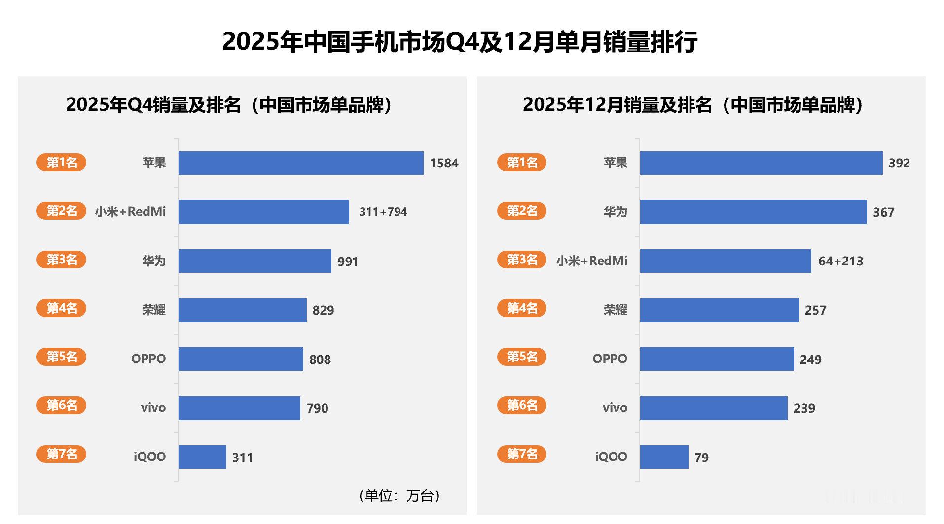 曾经的那个荣耀回来了!康康2025年Q4国内手机市场和12月的销量排行榜单,刨去子品牌,阿耀稳居前4。实话实说,这么多年荣耀品牌产品表现力有目共睹,虽然中间有些起伏,但从Q2新领导班子组建,给新荣耀注入的活力也是肉眼可见。布局更合理,智能、AI、ROBOTPHONE,一切都在暗中发力,2026年初带来的几款重磅产更是让人眼前一亮。再加海外市场发力,同比增长55%。相信未来荣耀会走得更稳健!