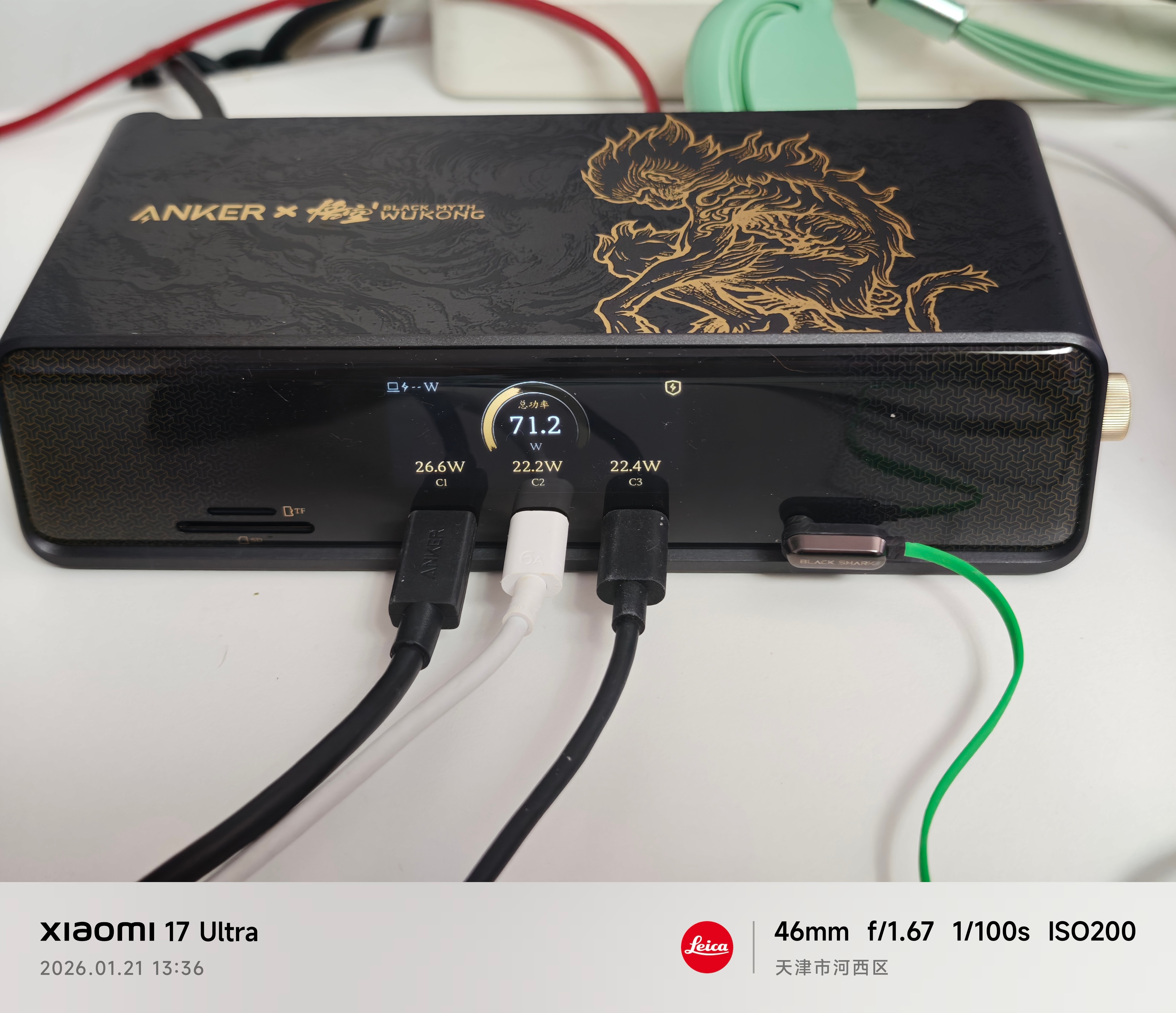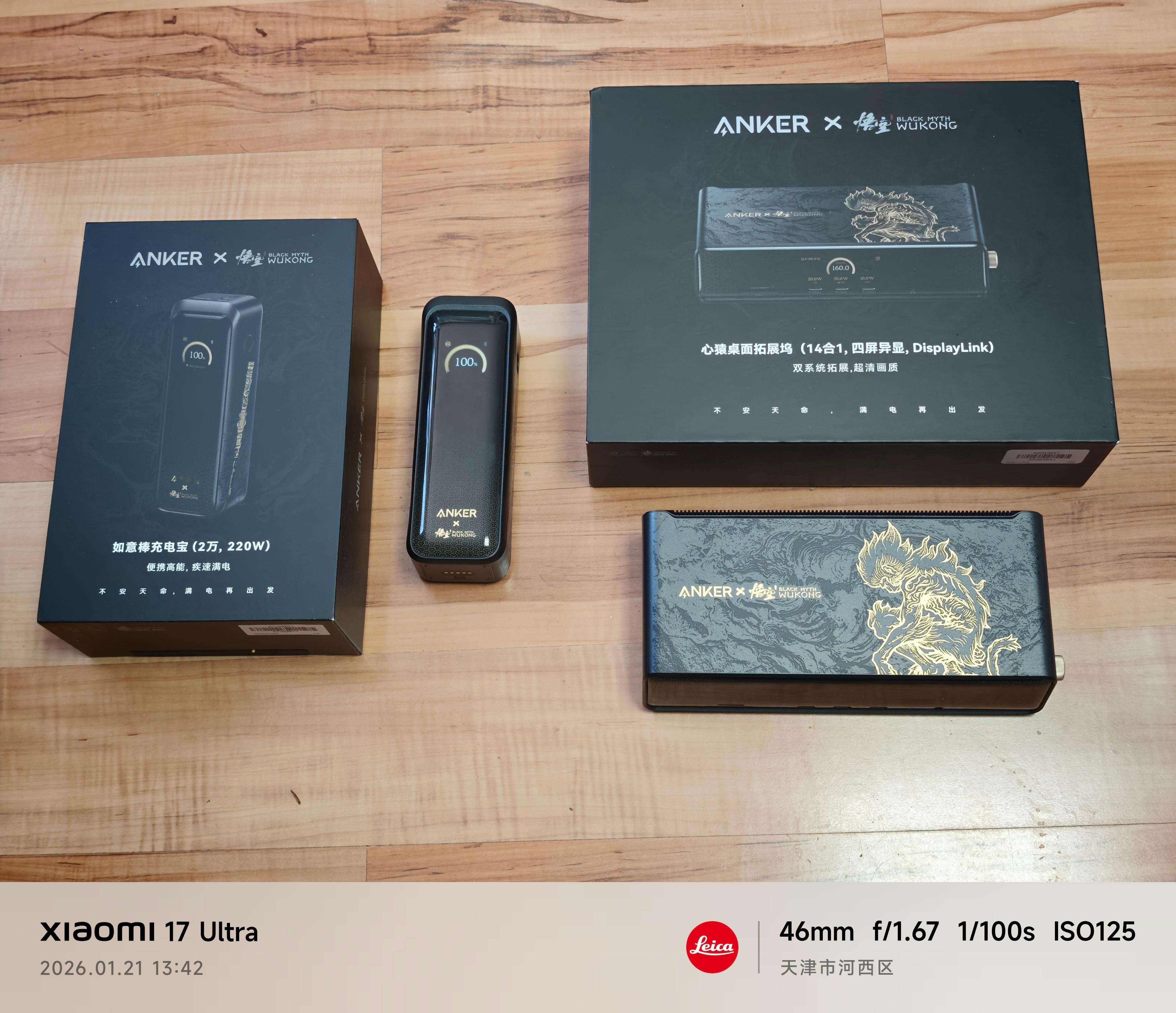 安克和黑神话悟空联名推出的心猿桌面拓展坞,还有如意棒充电宝,设计非常酷,集体打印和烫金工艺,做工精良。支持多种手机的快充,小米手机,vivo手机,华为手机我都试过了,都支持快充,还可以给电脑充电。扩展坞支持一个网线接口,三个USB接口,3个C口快充,一个DP接口,2个Hdmi接口,一个耳机接口,一个TF卡接口一个SD卡接口,还有电脑电源接口,用这一个扩展坞就可以满足手机,电脑,平板,显示器,读卡器,耳机等多设备的充电和连接需求,多功能拓展坞很强大。14合一,四屏异显,黑悟空的烫金印花图案非常吸精,喜欢《黑神话悟空》这个IP的可以考虑,既是多功能拓展坞,也是很好看的摆件,集线器都是五指山造型,有点意思。如意棒充电宝是2万毫安的,支持3C认证可以上飞机,我已经出差携带过了,支持双枪快充哈哈,两个c口支持同时充电,最大100w输入,充电很快,输出支持三口同时输出,支持手机➕平板➕电脑同时充电,自动分配功率,而且有液晶屏幕可视。这个充电宝我最近出差都带着,路上可以给手机和电脑充电。安克这波和黑悟空的合作挺好,科技产品加上国潮设计,送礼也很合适,正好春节要来了,几百块买礼品,如果喜欢黑悟空的,送这个挺好。你们有喜欢黑神话悟空的不?我还没玩过这个游戏,现在还火吗?斗叔聊数码