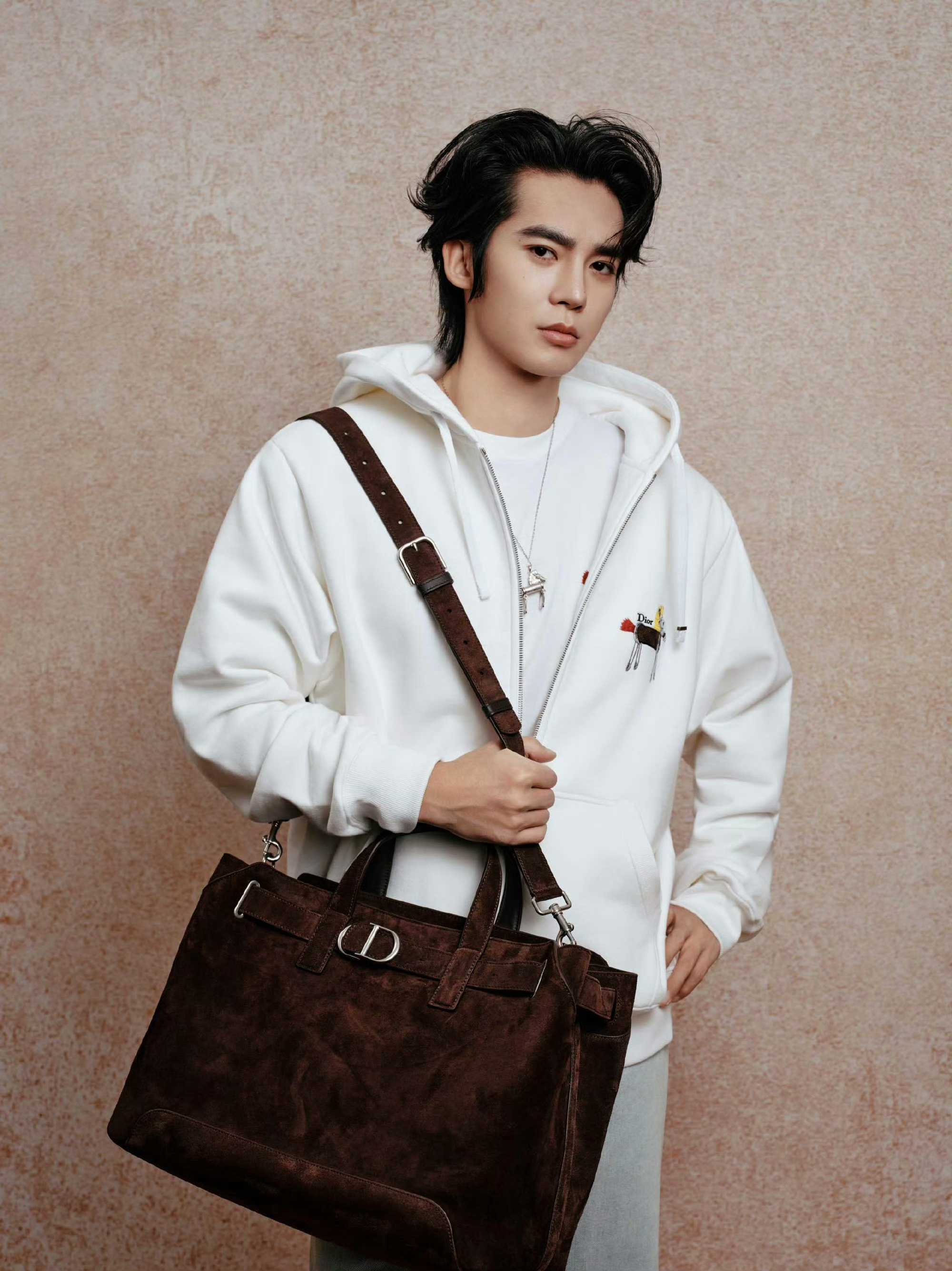 于适 in Dior 📷🐎 白色小马连帽卫衣,配麂皮手袋和牛仔裤,简约清爽的男友OOTD。风格大赏时尚灵感解读