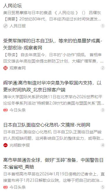 中日战争一旦爆发,战场走向大概率不会像“俄乌战争”那样,日本很可能会成为其他国家的发财地,但中国大概率不会收着打,要打就把日本彻底打服。 麻烦看官老爷们右上角点击一下“关注”,既方便您进行讨论和分享,又能给您带来不一样的参与感,感谢您的支持! 如果中日之间真的爆发战争,这场战事的走向绝对不会复刻俄乌战争的僵持局面。中国面对日本的持续挑衅,绝不会有丝毫手软,只会选择彻底打服对方,而这一切的背后,藏着美日两国各怀鬼胎的互相算计,其本质不过是一场利益的博弈。 清华大学国际关系研究院名誉院长阎学通曾精准点出,高市早苗上台之后,日本的对华态度愈发激进。这位日本首相完全摒弃了前任的对华友好策略,一边紧紧依附美国寻求所谓的安全庇护,一边主动在涉台等问题上挑事,不断触碰中国的红线。 高市早苗的强硬看似是日本的国家立场,实则不过是为了一己私利。她试图通过制造对华冲突的方式,转移国内的矛盾,争取国内保守派的支持,让自己的政权能够延续更久,这样的政治算计,让日本一步步走到了冲突的边缘。 而美国对于日本的纵容和支持,从来都不是真心实意。在美日同盟的关系里,日本不过是美国用来制衡中国的一颗棋子,一颗随时可以被牺牲的棋子。美国很清楚中日冲突的后果,却依旧不断向日本递刀子,默许其激进行为。 一旦战争真的打响,美国的所谓援助只会停留在表面,顶多是向日本高价售卖军火,再加上一些无关痛痒的口头声援。根本不可能出动兵力直接介入,毕竟美国从来不会为了盟友,让自己陷入真正的战争泥潭。 更值得警惕的是,美国极有可能效仿当年的广场协议,再次对日本下手。上世纪 80 年代,美国就曾通过广场协议迫使日元升值,直接导致日本经济陷入长期低迷,如今面对中日战争,美国只会借机让两国两败俱伤,自己坐收渔利。 对美国而言,中日无论哪一方受损,都是对美国有利的结果。中国的发展会受到牵制,而日本则会因为战争更加依赖美国,届时美国不仅能靠卖军火赚得盆满钵满,还能进一步掌控日本的经济和政治,巩固自己在亚太的地位。 日本看似有着不俗的实力,尤其是在半导体领域,手握全球近 30% 的半导体材料、70% 以上的光刻胶市场份额,信越化学、SUMCO 等企业更是行业内的巨头,在全球产业链中占据着重要位置。但日本却把这一优势,和军工生产深度绑定。 这些核心的半导体产业,正是日本导弹、战机等军工装备生产的命脉,半导体材料的供应和加工,直接决定了日本军工生产的能力。看似是经济优势,实则成了日本最大的软肋,一旦半导体产业出问题,日本的作战能力会瞬间大打折扣。 更何况,日本的军事力量本身就存在着致命的短板。日本自卫队早已面临严重的人员短缺问题,截至目前,人员缺口达到 1.64 万人,陆上自卫队更是缺员约 1.1 万人,所谓的近 3 万个岗位空缺,不过是被夸大的数字。 除了人员缺编,日本军工领域还面临着熟练工人断档的难题。年轻一代不愿投身自卫队,军工行业的技术传承出现断层,这样的 “空心化” 现状,让日本即便有先进的军工技术,也难以转化为实际的作战能力。 面对这样的日本,中国若真的开战,绝不会采取盲目轰炸的方式,更不会伤及无辜的民用设施和普通民众。中国的军事打击会极具针对性,精准锁定日本的半导体基地,从根源上瘫痪其军工生产的链条。 这样的精准打击,既能彻底废掉日本的作战能力,让其失去持续作战的资本,又能最大程度减少不必要的损失,彰显中国的军事素养和人道主义立场。中国的目标很明确,不是要摧毁日本,而是要让日本彻底放弃挑衅的念头。 日本之所以敢如此嚣张,归根结底还是源于美国的纵容。正是因为有美国在背后撑腰,高市早苗政府才敢不断突破和平宪法的限制,大幅增加防卫预算,甚至和菲律宾等国勾结,试图构建围堵中国的圈子。 但日本显然打错了算盘,它以为依附美国就能高枕无忧,却没想到自己早已成了各方眼中的 “肥肉”。一旦战争爆发,日本不仅会成为美国的棋子,还会成为其他国家的发财地,各路势力都会借机在日本捞取利益,让日本陷入万劫不复的境地。 日本的挑衅行为,最终只会让自己沦为利益博弈的牺牲品。当战争的硝烟燃起,那些所谓的盟友,只会想着如何从日本身上牟利,而不会真正伸出援手,届时日本才会明白,靠依附他国换来的 “安全感”,不过是镜花水月。 而对中国而言,这场战争如果真的无法避免,打赢它不仅是军事层面的胜利,更是一场关乎国家主权和地区格局的关键对决。中国的胜利,会彻底粉碎美日的算计,让美国的亚太霸权梦碎,让日本认清自己的位置。