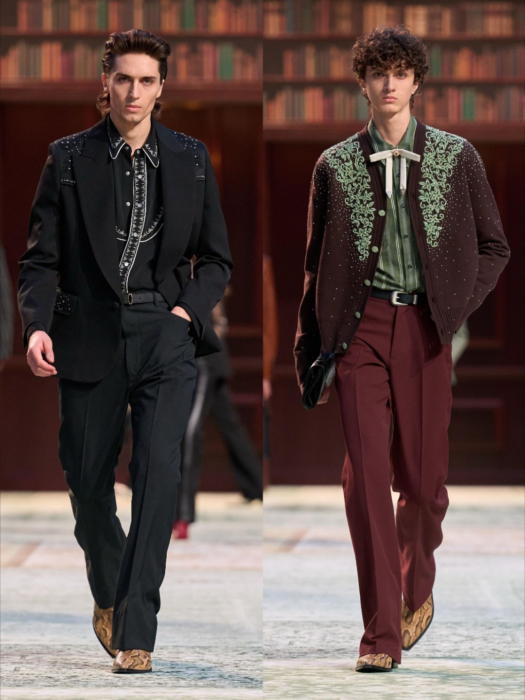 男装周巴黎男装周大秀直击 AMIRI 2026秋冬男装系列在巴黎时装周登场,这一季将灵感锚定在好莱坞山与劳瑞峡谷,把洛杉矶黄金年代的反叛精神与创意活力揉进了每一件设计里。70年代的西海岸风潮被重新诠释,跨越性别的廓形与剪裁,让正装既有舞台表演般的戏剧张力,又能无缝融入现代日常。美式经典廓形与当代审美碰撞出独特质感,每一件单品都像一封写给黄金年代的情书,在多元共生的设计语言里,让复古与摩登完美对话,最终沉淀成可以穿很久的衣橱典藏。