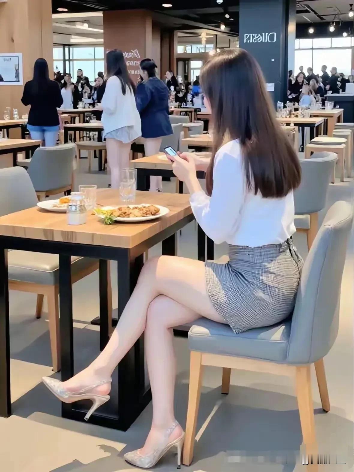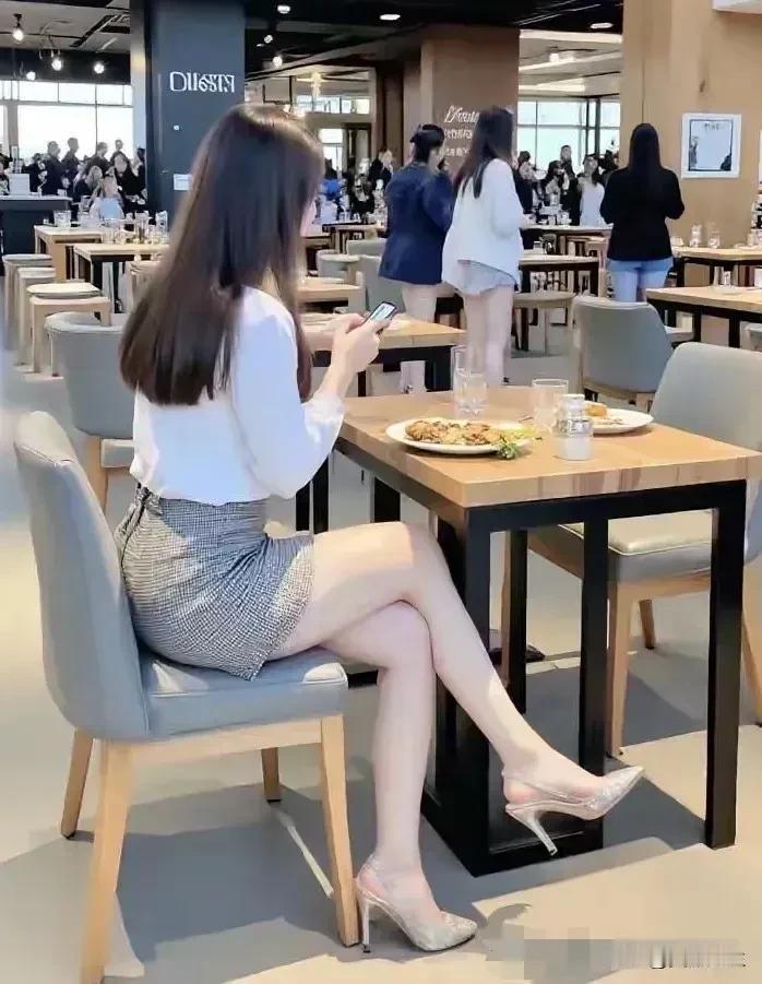 优雅餐厅里,她轻抚眼镜,静享美食时光。