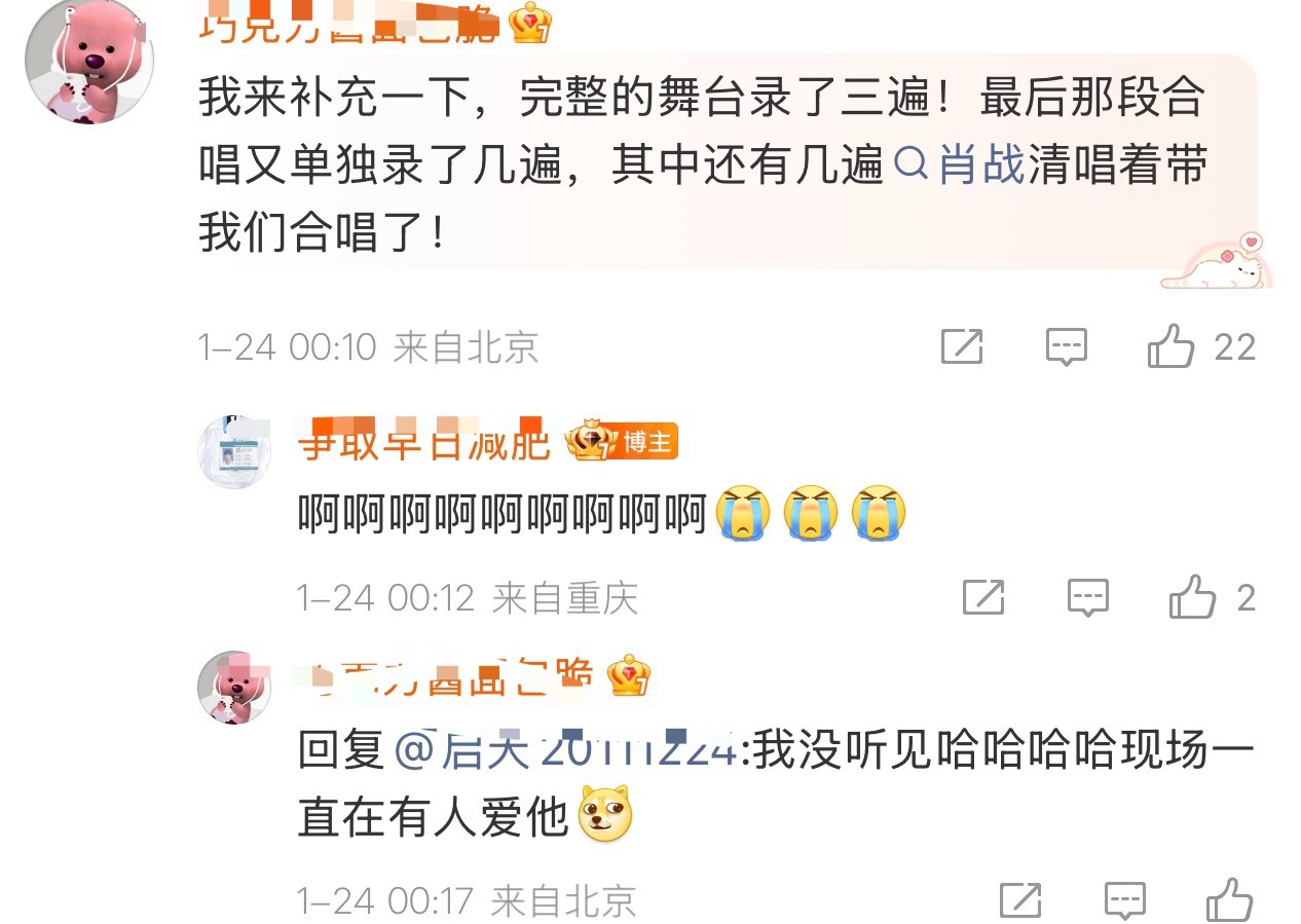 看完肖战北京春晚录制现场观众的repo不得劲了!现场导演把肖战粉丝安排在舞台两边,方便和肖战合唱,粉丝练歌的时候肖战听到还给粉丝竖大拇指,肖战还和粉丝合唱了几遍