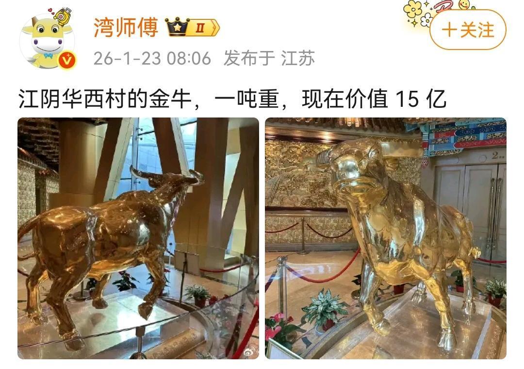 再璀璨的水晶长龙也不如金牛实惠。 (图一)是吴姓某女星为了讨好未来的婆婆,花费巨资从定制了水晶长龙灯,当时有多风光,如今就有多落魄,对比太强烈了。 (图二)其实真不如学习江阴华西村,定制个大金牛放在哪里,按现在的金价,这金牛的价值能翻多少倍?