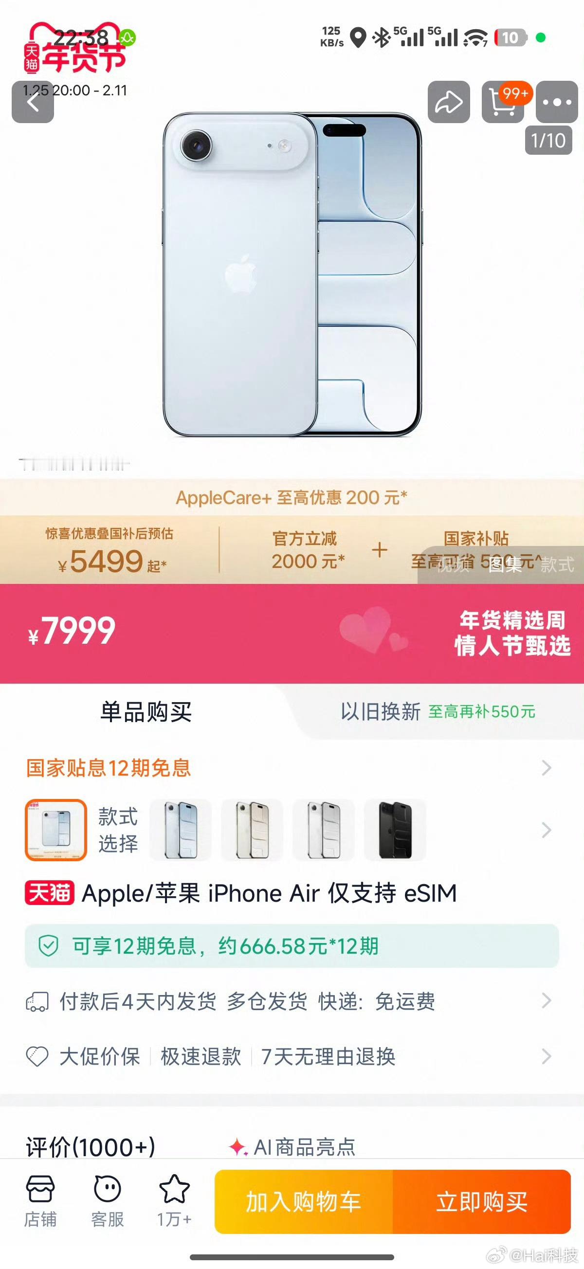 太狠了哥们,iPhone Air打到5499……你让之前买的果粉怎么想?!AppleApple 新春限时优惠