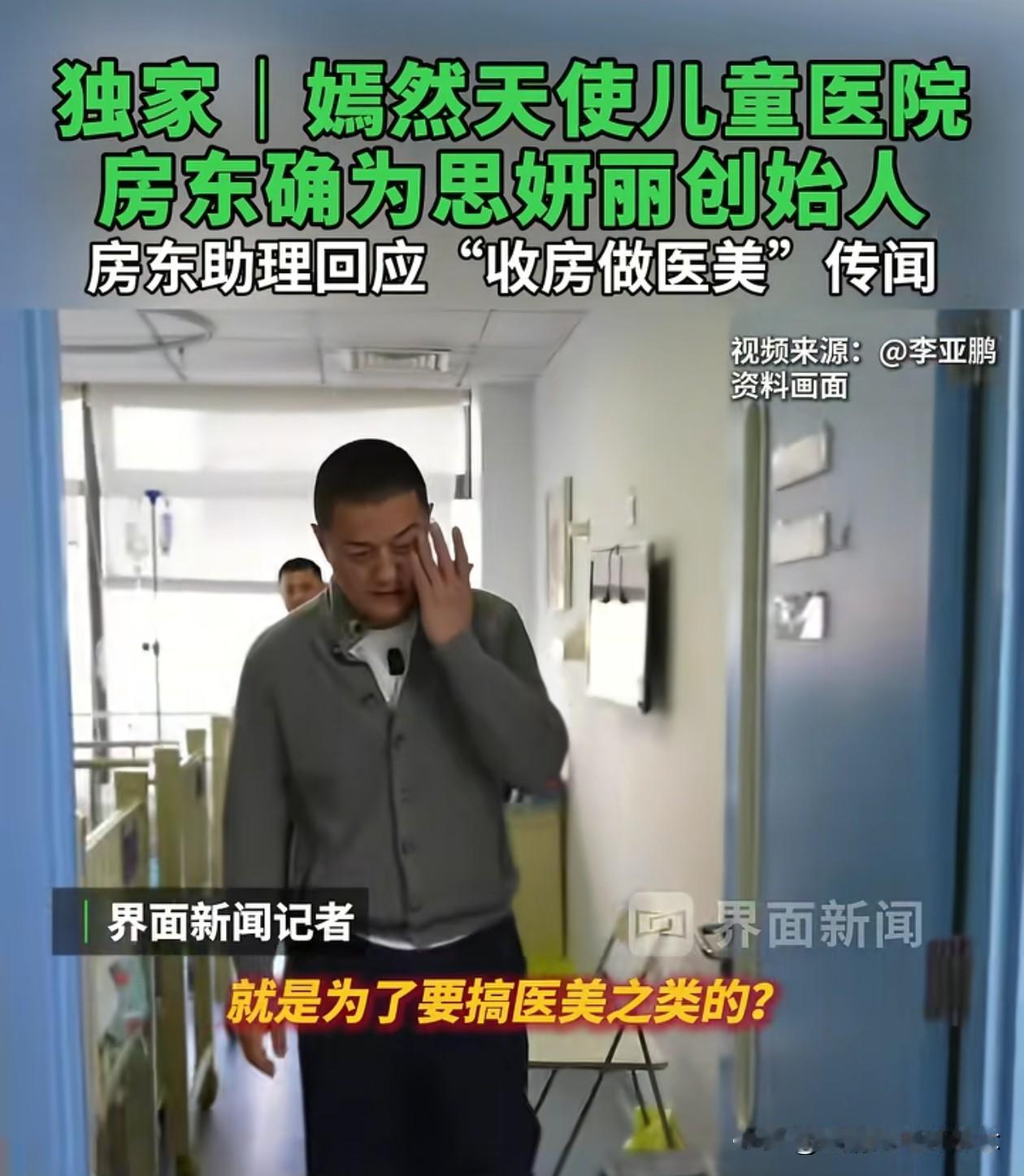 终于搞明白了,嫣然儿童医院的房东为什么非要收回房子不愿出售, 因为房东张毅想用这个现成的医院来继续做医美。 据公开信息,房东张毅是美容品牌思丽妍的创始人,这个品牌创始于1996年,在2017-2018年,张毅陆续出售手中的股份。2025年10月,思丽妍被“美丽田园”以12.5亿元全资收购。 据说,思丽妍在被收购前,是中国第三大美容服务品牌,在全国48个城市拥有超过180家门店。现在,房东张毅已经退出,思丽妍已发展成为上市公司美丽田园旗下的高端品牌。 这就说得通了,房东2019年和李亚鹏签第二个十年租约的时候,估计已经想好,要么收高租,把钱放自己口袋,要么让嫣然搬家,自己用现成的地方来医美。这算盘打得也太响了。 结果李亚鹏没搬,现在还欠租,房东不同意以市场价出售房产,网友还预测不会有人租他的房产,会空置,没想到,人家根本没想过租出去,人家自己也看中了这个医院的设施,可以直接用,还可以省装修费的。 说到底,李亚鹏就是因为要做公益的善良被人拿捏了,希望嫣然尽快找到合适的地方搬走,让更多的孩子展露笑颜! (信息来源:界面新闻)