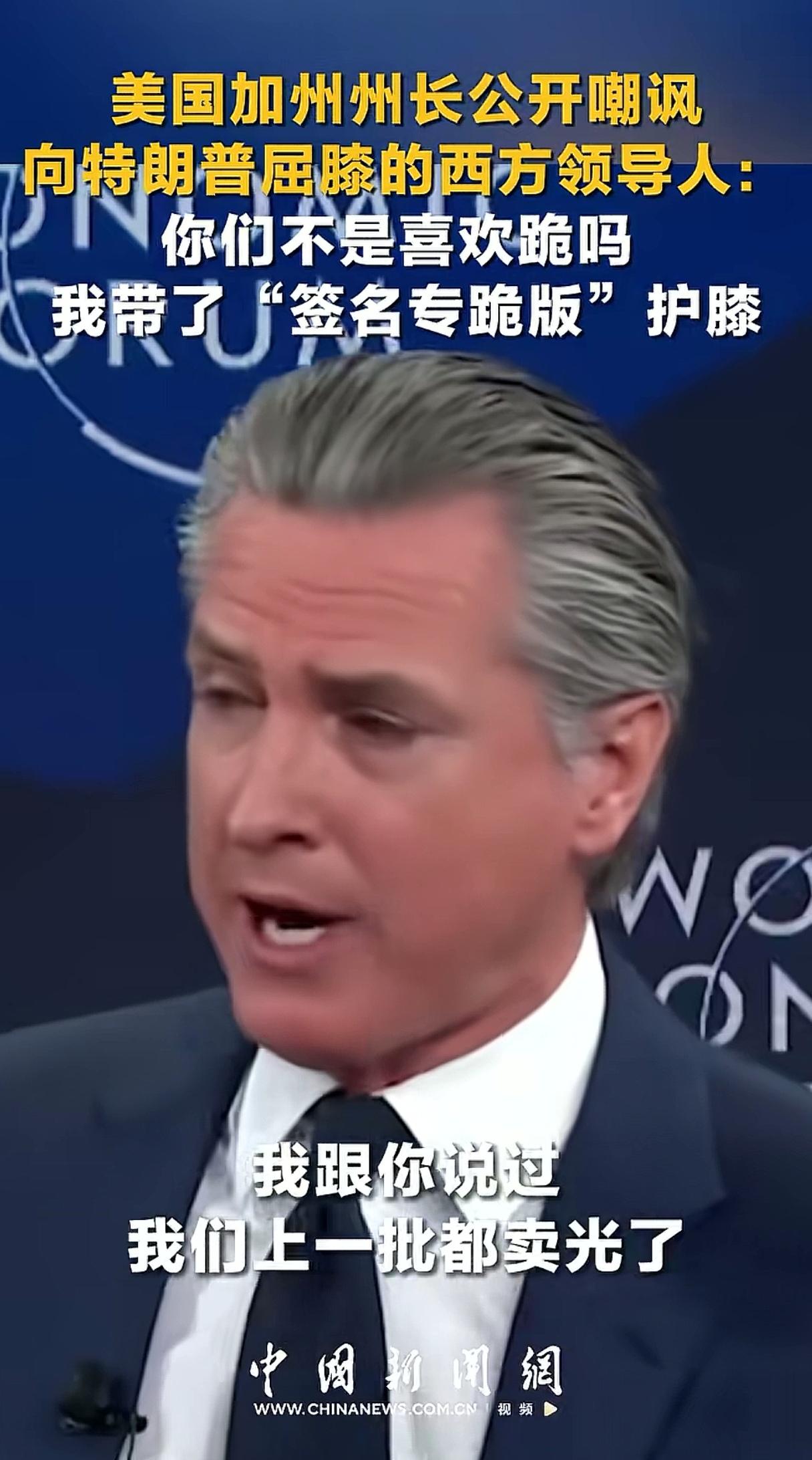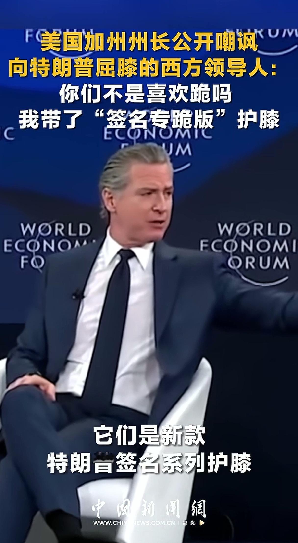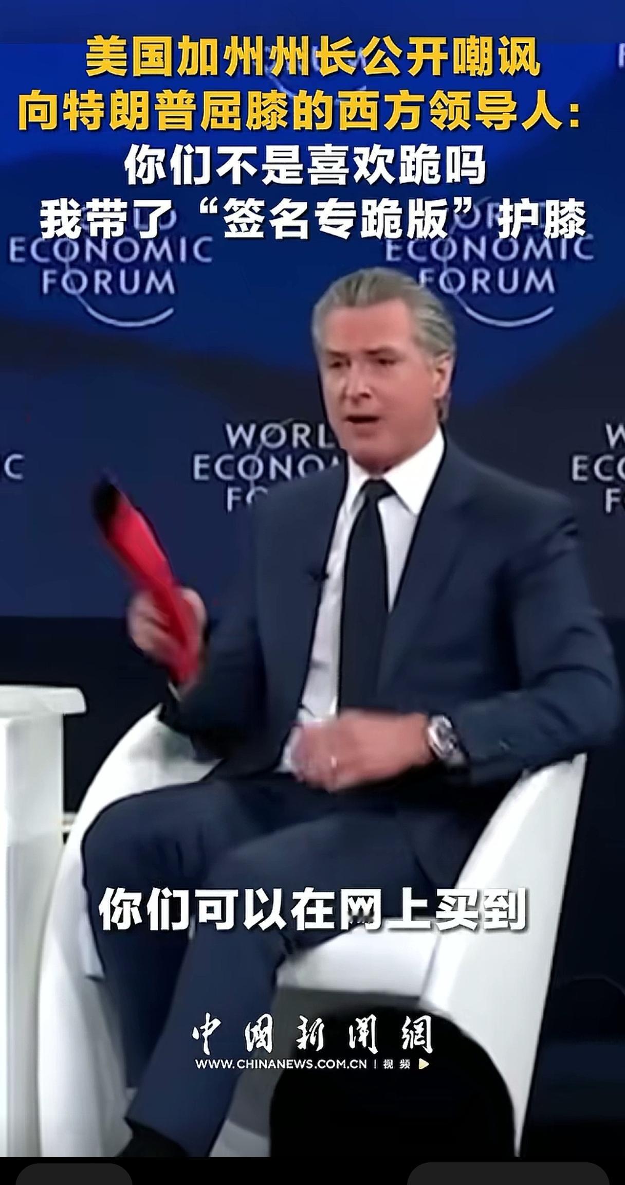 最近纽森在达沃斯论坛也大出风头,他带去的“签名专跪版”护膝被“一抢而空”,赚足了眼球。欧洲人现在脑子有点不够使,心里一定在嘀咕,你们共和党让我们跪,民主党不许我们跪,我到底听谁的。如果纽森三年后问鼎白宫,也是花活一大堆,就光是把跪着的欧洲人一个一个拉起来都需要费很多小心思。大家可以设想一下我们还可以接着看七八年戏,还是很过瘾的。但纽森这个护膝并不是新鲜玩意儿啊,我们大约三十年前的爆款剧里面就有,叫“跪的容易”。