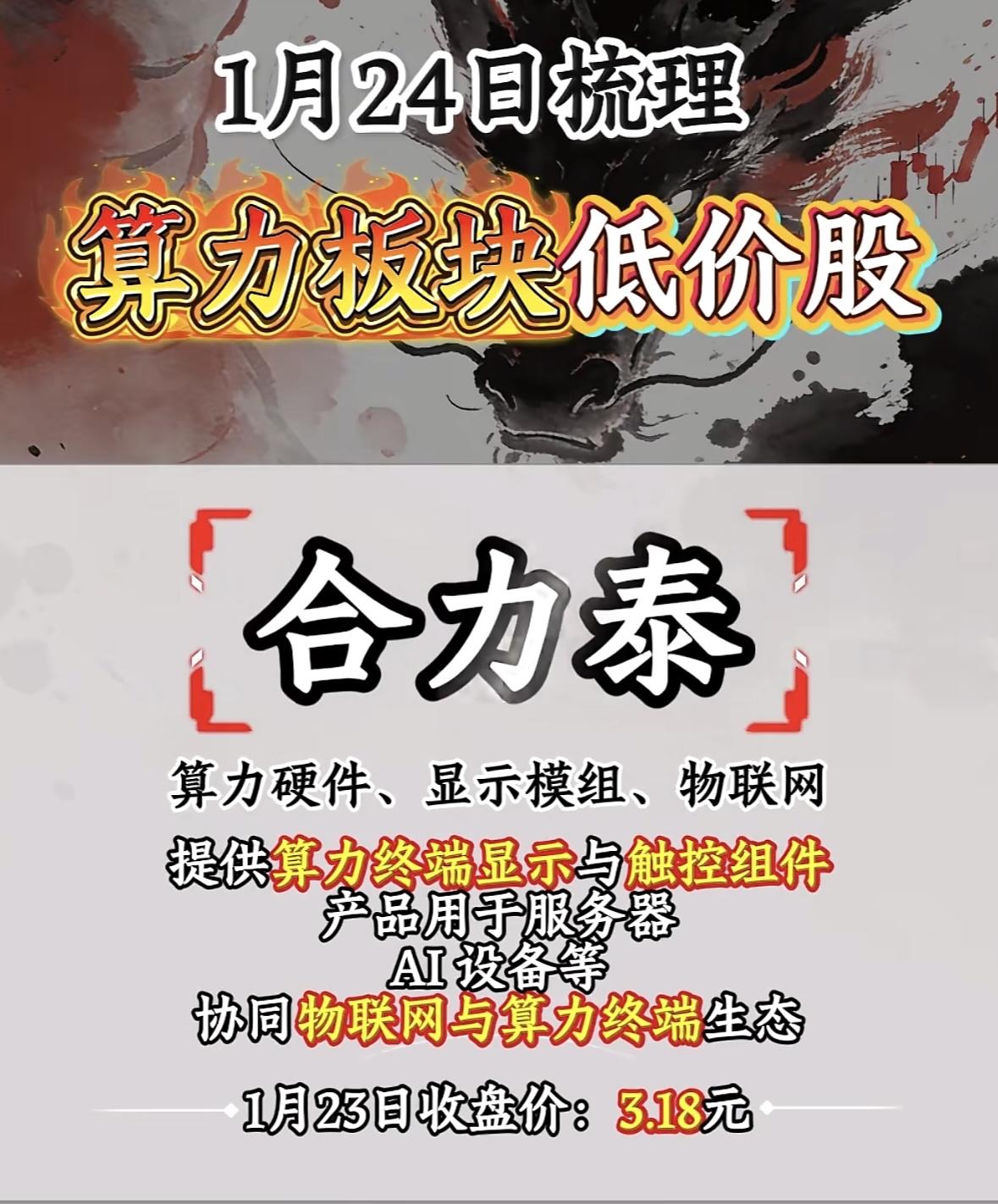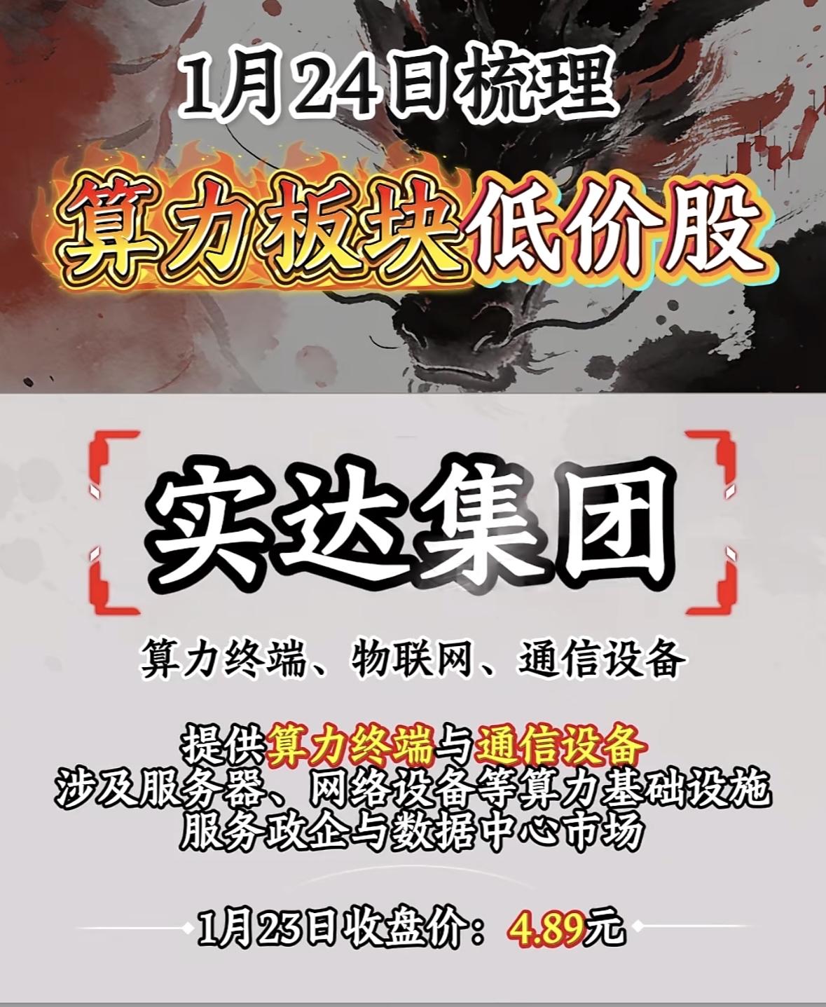 1月24日5元以下低价算力股梳理 实达集团算力板块低价股梳理,4.89元收盘价,不容错过! "中国能建布局算力基建与绿色能源,服务东数西算枢纽,潜力低价股引关注。"
