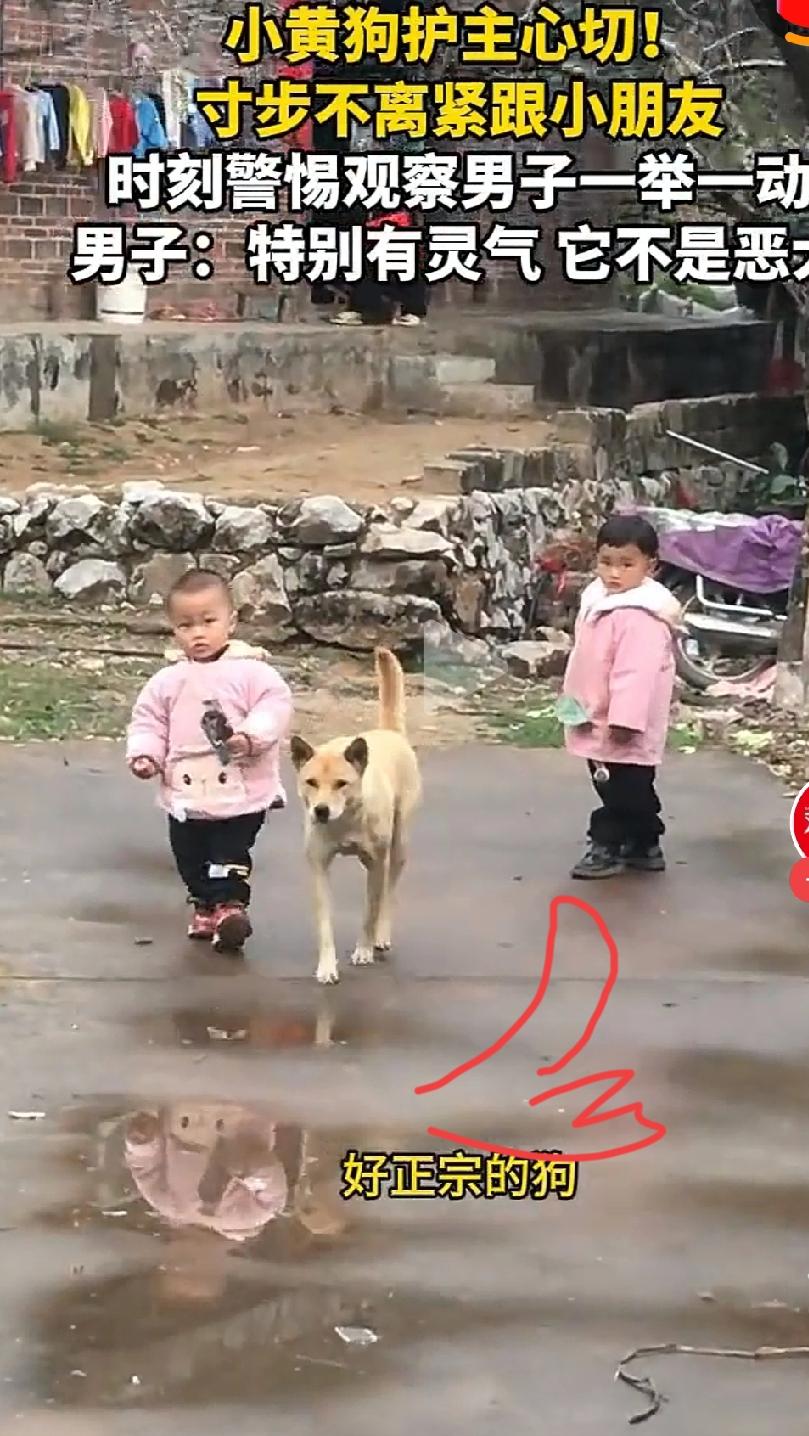 小黄狗护主心切!寸步不离紧跟小朋友,时刻警惕观察陌生男子一举一动。 小黄狗护主的场景太暖了!在一农村院子里,两个5岁的小朋在自己家门口玩,一个陌生男人靠近小朋友, 小黄狗阿黄狗稳健的走过来,挡在身前,毛发竖起,露出尖牙,喉咙里 发出低沉威武的喉声。陌生人不敢靠近半步。小黄狗保护主人可谓是认认真真,仔仔细细,出生入死尽全力。真要为小黄狗点赞!狗妈妈护崽 犬灵犬小黄 小黄小狗