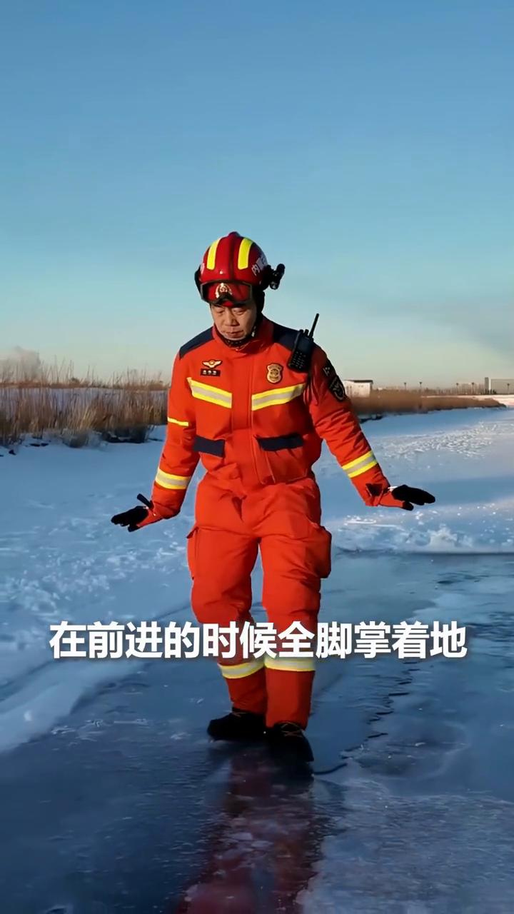 雪天路滑易滑倒怎么办?消防建议:学走"企鹅步"。 内蒙古消防救援机动总队呼伦贝尔支队海拉尔大队中队长成旭倡。 企鹅步:首先要将两手打开,两脚分开30到45度,呈外八字,两膝微曲,在前进的时候全脚掌着地,不要步幅过大,两个手要始终保持平衡,千万不要将手插入衣兜,很容易造成重心不稳。
