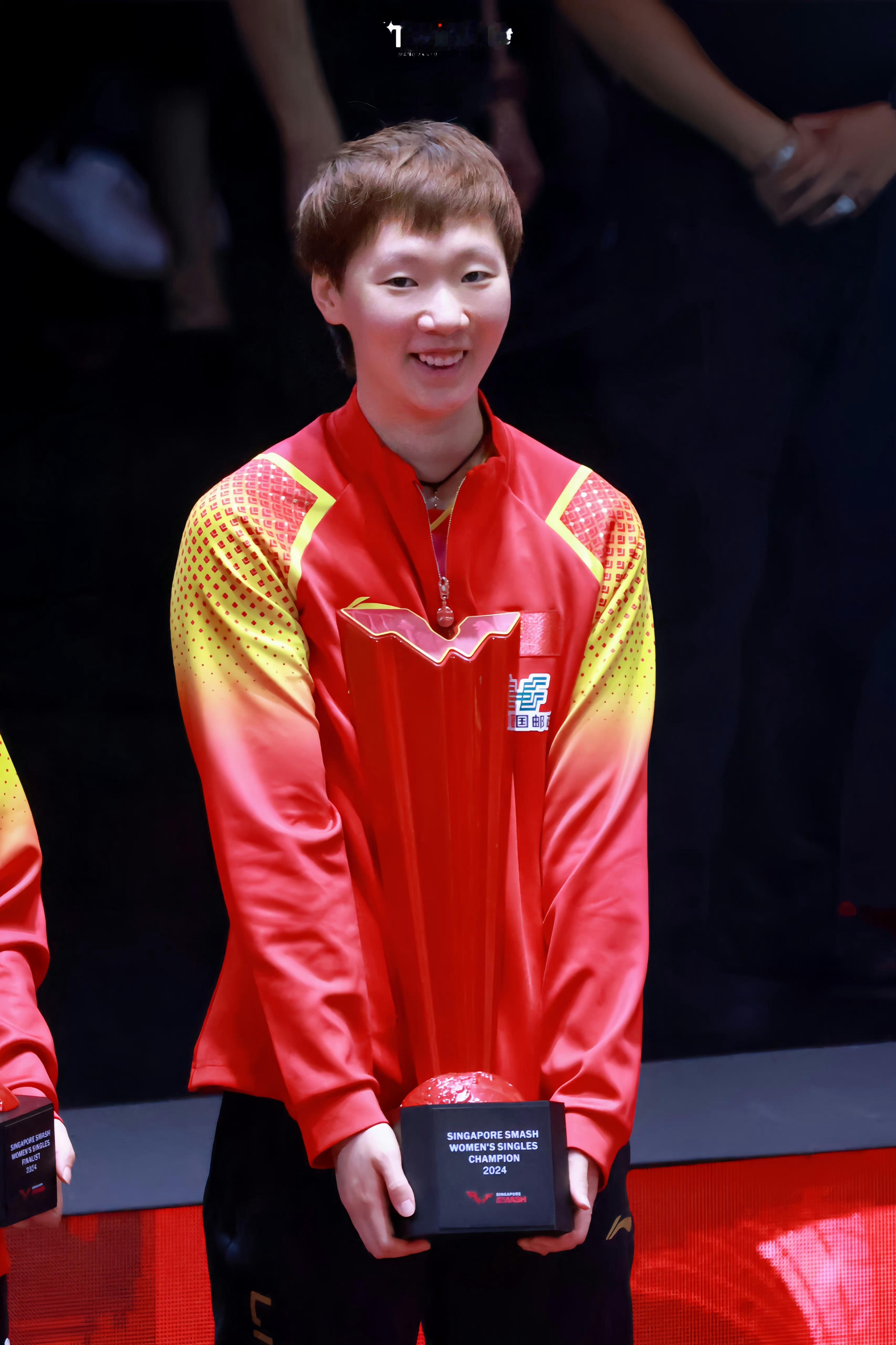 王曼昱捧杯这张照片挺好,笑靥,真实未P图,代言P的不像本人了。