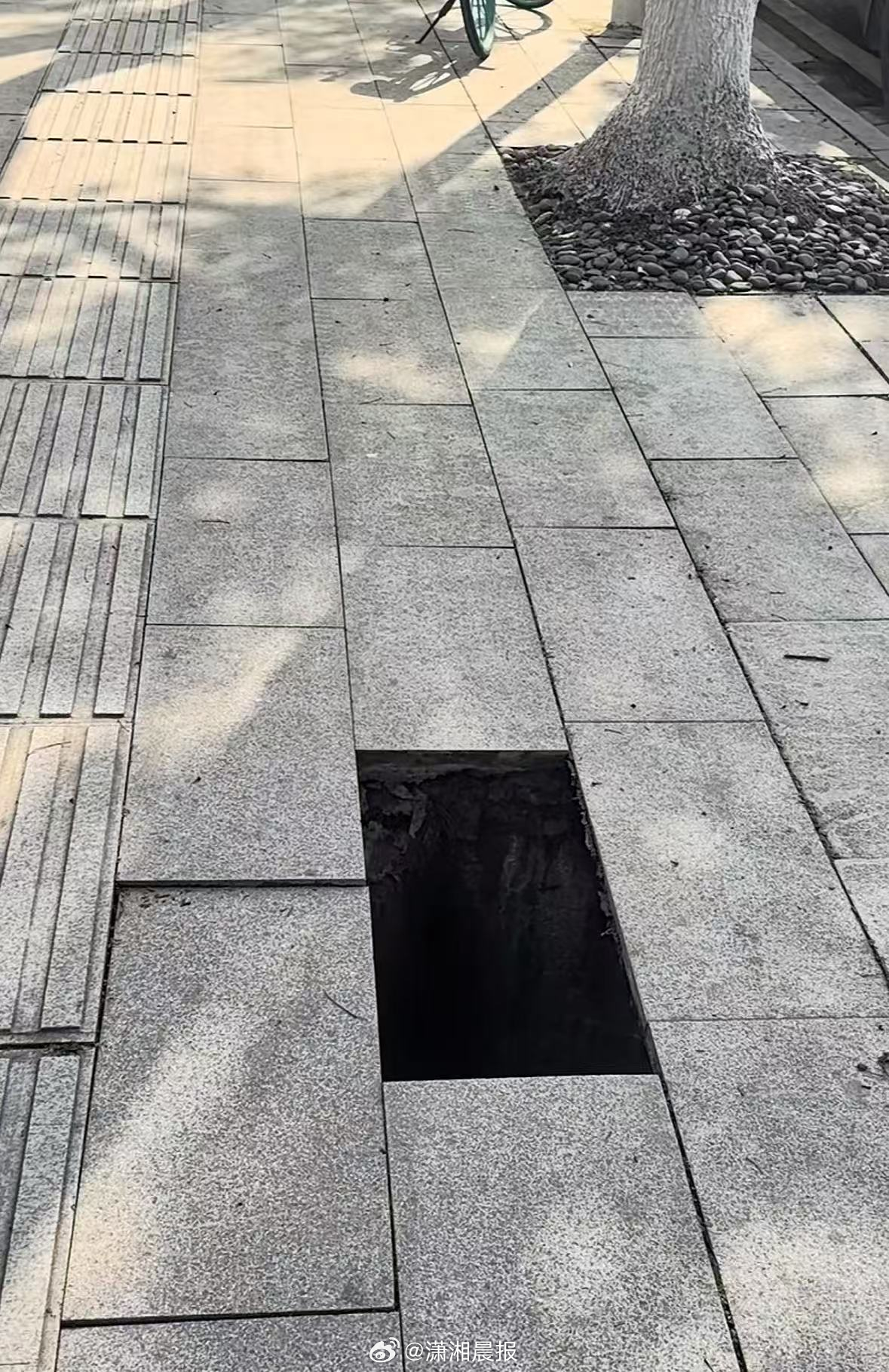 #武汉一人行道地砖突然掉落后现深井#【“连人带地砖往下漏!”武汉一人行道地砖突然掉落,竟出现“深井”!回应:在尽快处理】#当地回应人行道地砖掉落后现深井# 1月23日,一名网友发帖称,自己在武汉光谷生物城一人行道上正常走路时,踩到一块砖突然掉落,下面竟然是一个看不清深度的“井”。该网友称,自己是从外地到武汉出差,工作结束后步行准备去坐地铁,人行道路面很正常,没有破损也没有下陷,自己正常行走,一只脚踩下去时连人带地砖一起突然往下漏,“求生本能,人整体往后躺下去摔在旁边,一条腿跟着地板下去,人没受伤。第一感觉是好丢人,因为人是四仰八叉躺下去了。爬起来后看到下面是个深井,才开始害怕。”该网友称该口深井是枯井,有底,不确定多高,但肯定比人高。后续自己用自行车盖住,也向在地铁站遇见的民警反映了该情况。“我不理解的是下面是井,为什么没有井盖,而是只有一块地板,这个地板竟然还没有任何的支撑力。”不少网友在评论区询问进展,该网友回复称已反馈给附近工作人员,并用一辆共享单车挡住洞口,防止有人不慎掉落。1月24日上午,记者就此事致电东湖新技术开发区城管局市政科,工作人员表示事发道路属于生物城园区道路范围,“他们已经在尽快处理,现场已经围起来了。”对于为何普通地板下方为何是一口深井、没有铺设井盖等,该工作人员表示,“这个是园区内部道路,他们会进行调查。我们也会督促他们尽快处理。”当日上午,记者也就此事多次致电东湖新技术开发区生物城办公电话了解详情,未能接通。(潇湘晨报记者吴陈幸子)武汉