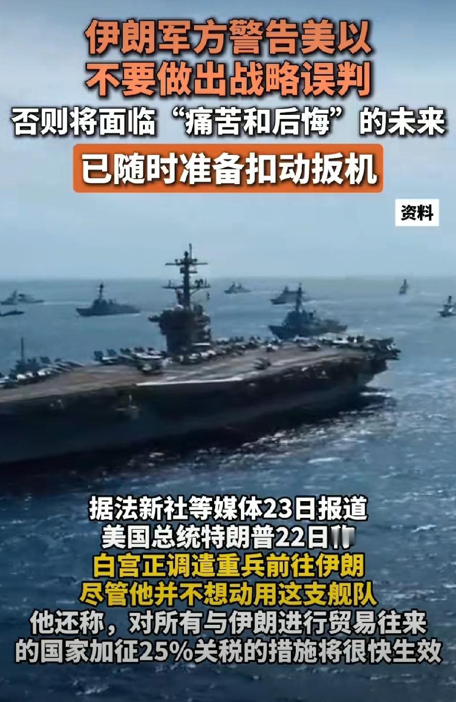 伊朗硬刚美国!手指扣扳机随时反击,中东要变天? 特朗普这波操作太狠了,一边调重兵派航母往伊朗怼,一边还要给和伊朗做生意的国家加25%关税,明摆着软硬兼施逼伊朗低头啊! 但伊朗也不是软柿子,革命卫队直接放话随时扣动扳机,拼尽全力反击。 一边是美军航母静默逼近,一边是伊朗导弹无人机备好,这针尖对麦芒的,中东局势真的悬了! 一旦打起来,全球油价、地区和平全受影响,希望别真的擦枪走火啊。 军事 国际