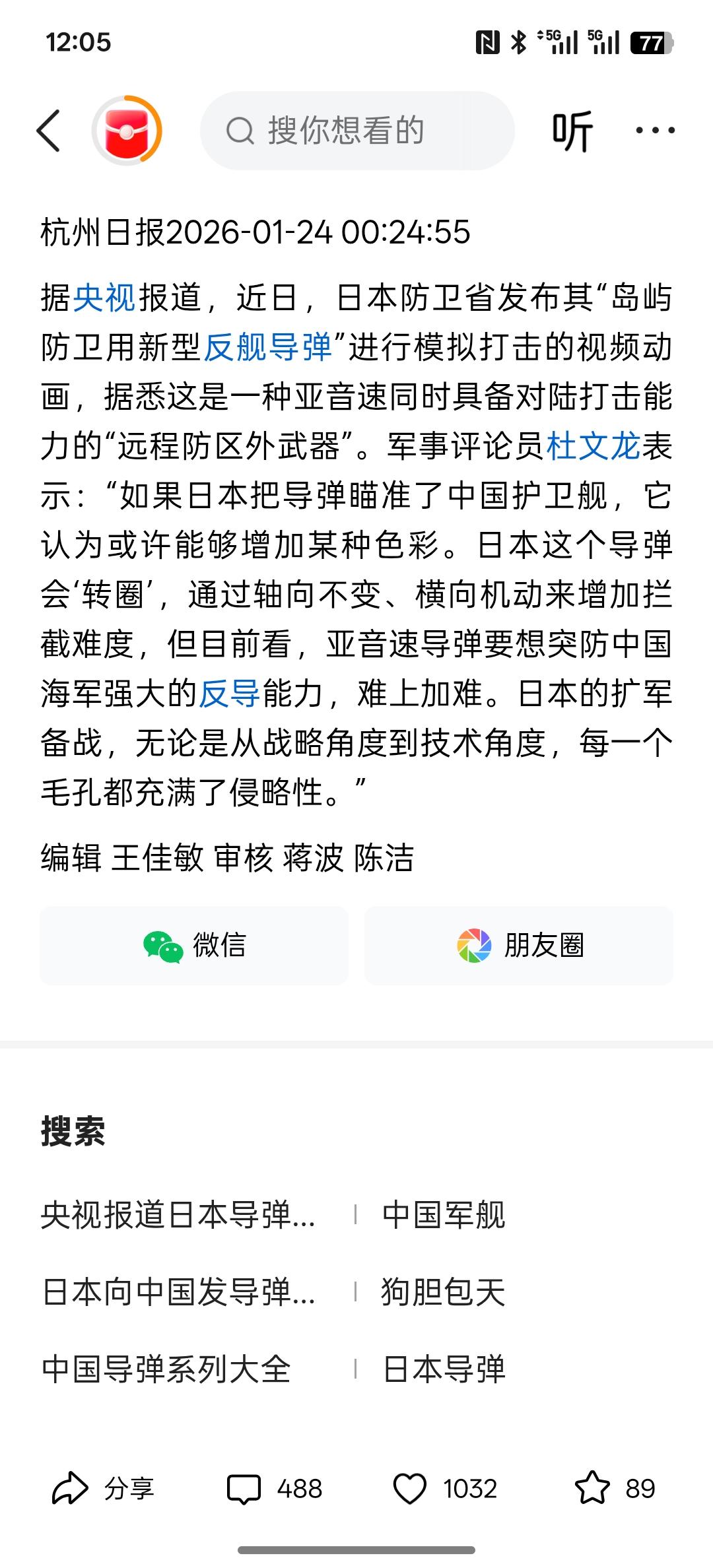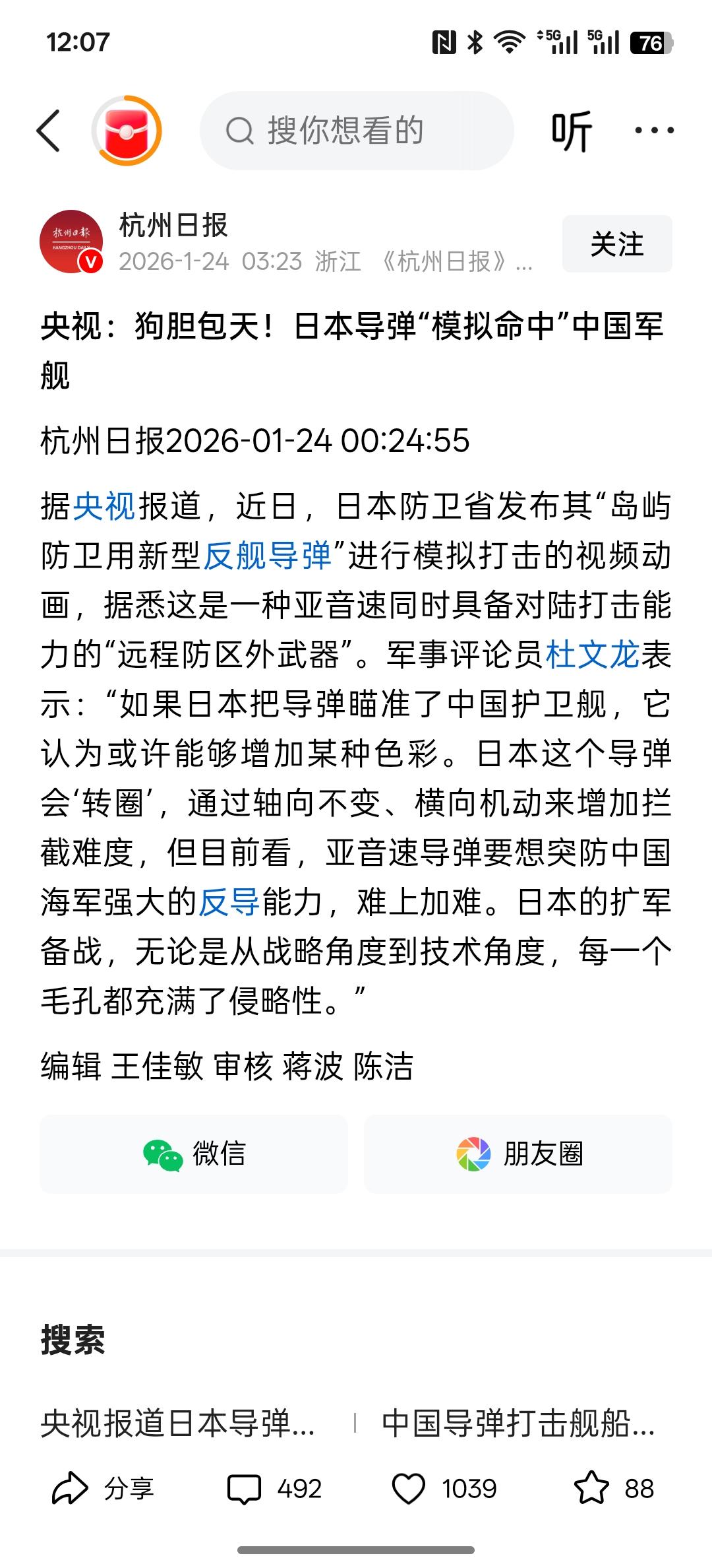 这有点吓人,央视:狗胆包天!日本导弹“模拟命中”中国军舰。 现在中国的武器装备先进程度岂能是日本说命中就命中的?日本还认为,中国是甲午战争100年前的军队吗? 日本的军队想导弹命中中国的军舰基本上是难上加难!中国目前的武器装备升级程度是非常先进的,在全世界范围内有几个国家能突破中国军舰的防御! 不过,日本想扩充军备,无非就是有侵略的想法!日本一直还是有野心!所以日本这样的一个国家,在军事武器装备的扩充是绝不允许的!