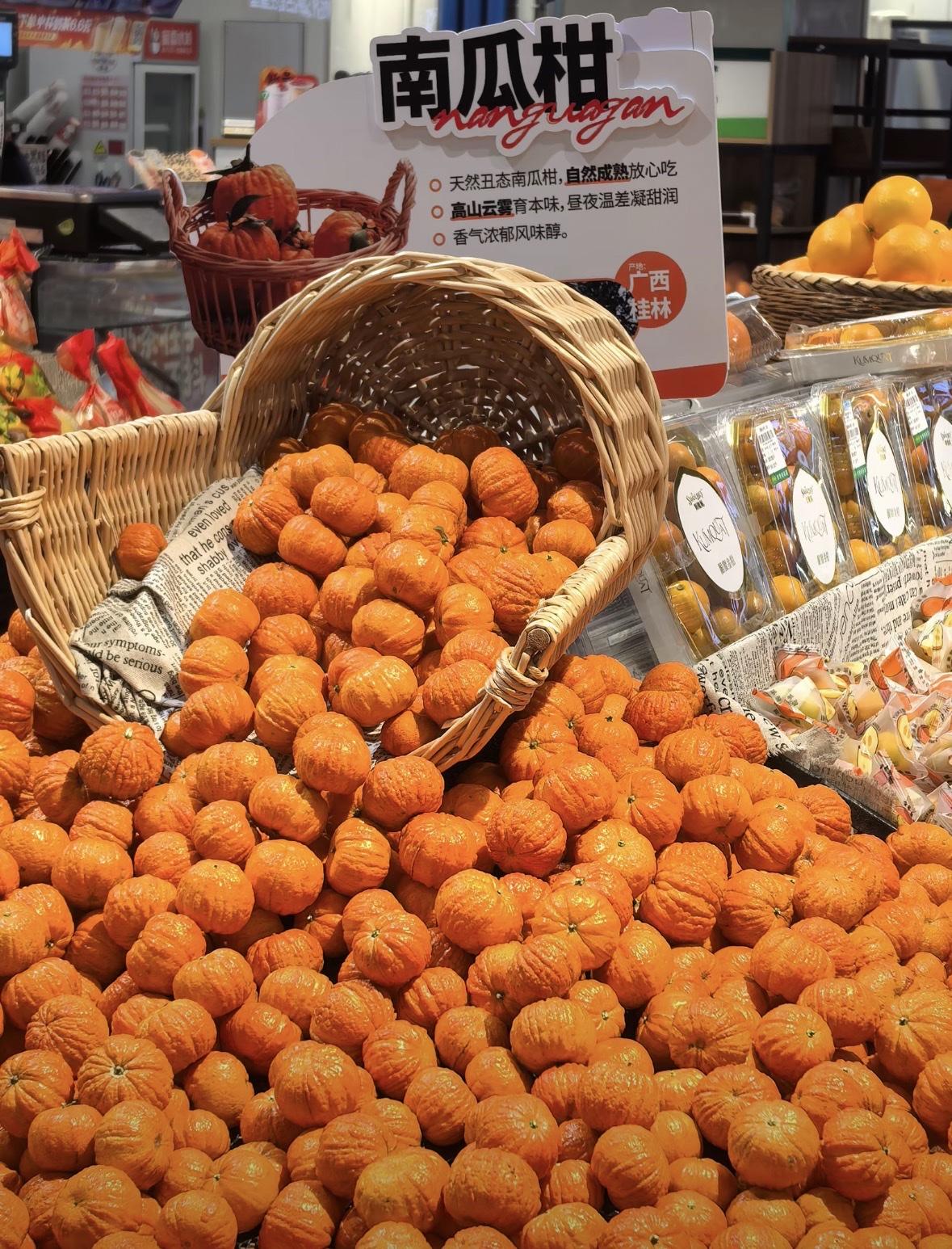 新品种南瓜橘进入市场,一款酷似南瓜外观的新款砂糖橘投放超市水果区,价格比砂糖橘偏贵。新品种水果逐年增多,红心菠萝黑草莓又来了一个南瓜橘,这款南瓜橘产自广西桂林又叫南瓜柑,比一般砂糖橘口感要好,甜度增加价格偏贵,等过几年价格下来再买。