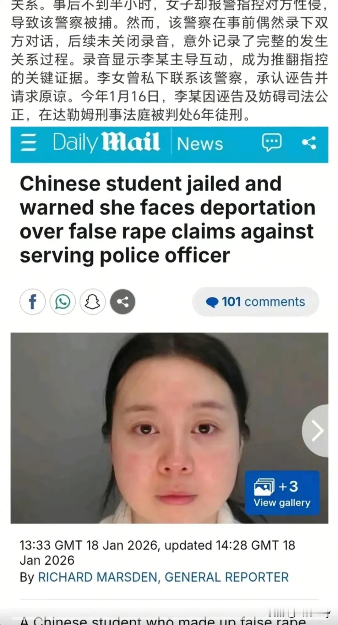 诬告阿sir,反被逮捕。 近日,英国判了个大快人心的案子:一名29岁的东大女留学生,因为诬告一名当地阿sir强j,结果喜提6年银手镯。 事情的起因是女留子通过交友软件结识当地一名阿sir,并且当晚就自愿发生了关系。结果事后不到半小时,俩人就出现争执,女留子反手报警,指控阿sir强j。 于是,阿sir被逮捕关押35个小时,并且停职5个月。然而有趣的是,阿sir平时有录音习惯,两人当晚互动过程全被阿sir录了下来。法官听完录音后表示阿sir并无胁迫行为,女留子全程主动引导阿sir。 女留子眼看要败诉,又转头寻求阿sir的帮助,不过事情已无法私下和解,最后女留子被控三项妨碍司法公正罪名,判刑6年。 于是有网友锐评:这是把“国际服”当“国服”撒泼了?真是丢人丢到国外去了。