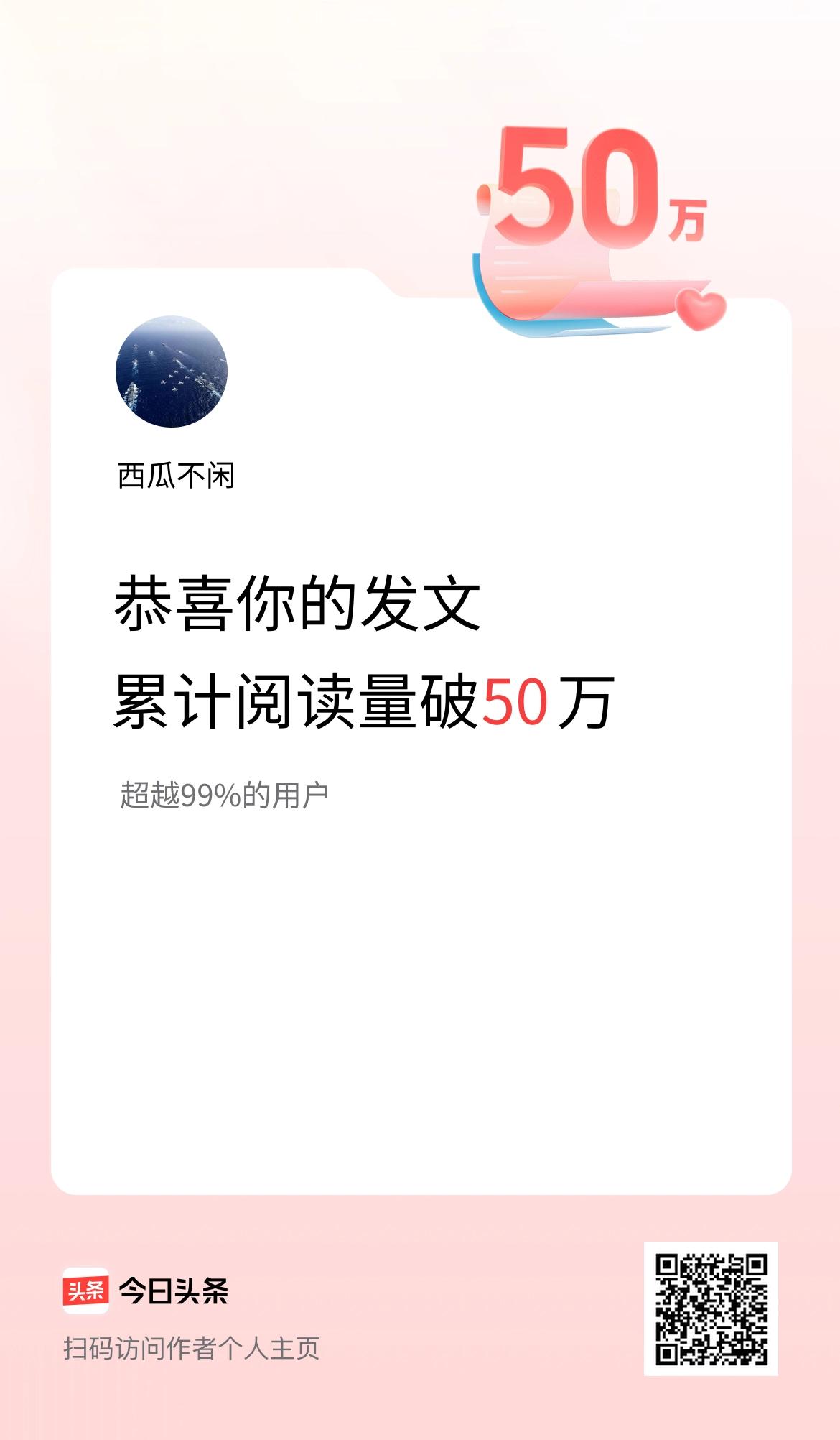 🤝我在头条累计获得阅读量破50万啦!