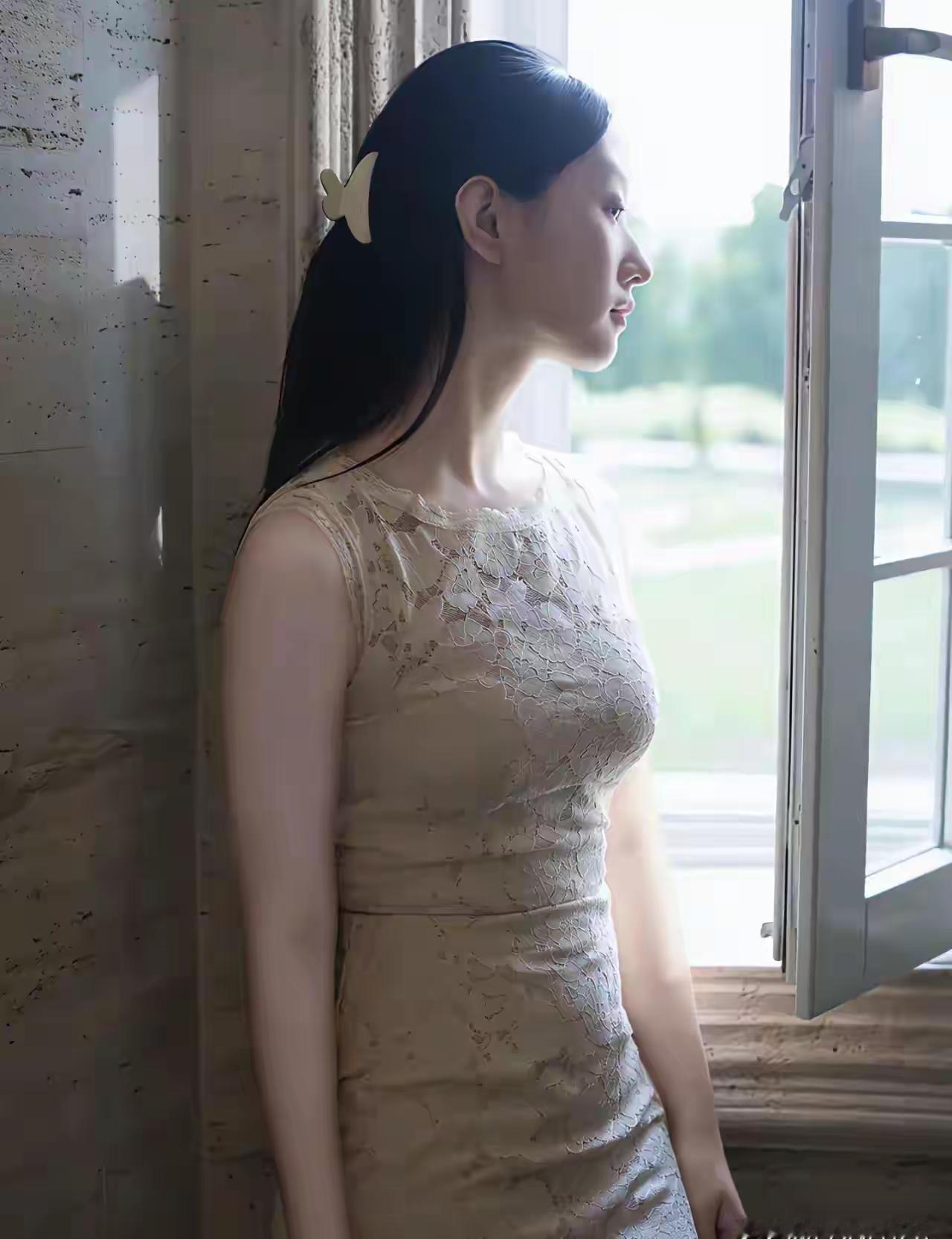 落日熔金染远岑,寒林瘦木共萧森。高衫浅衬凝脂色,长发轻垂素玉簪。独立荒郊惊岁