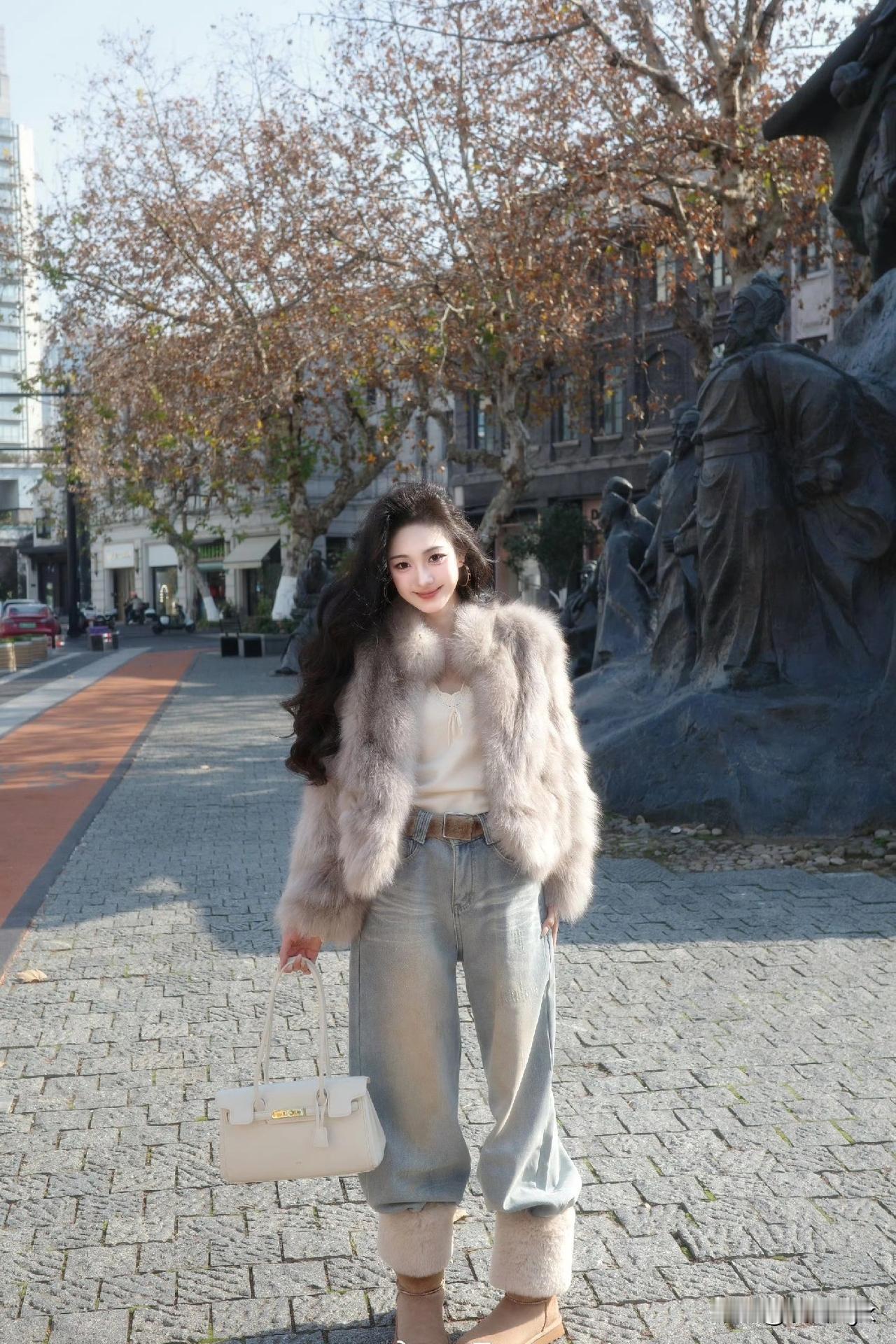 冬日穿搭指南:温暖毛绒与优雅连衣裙的完美结合
