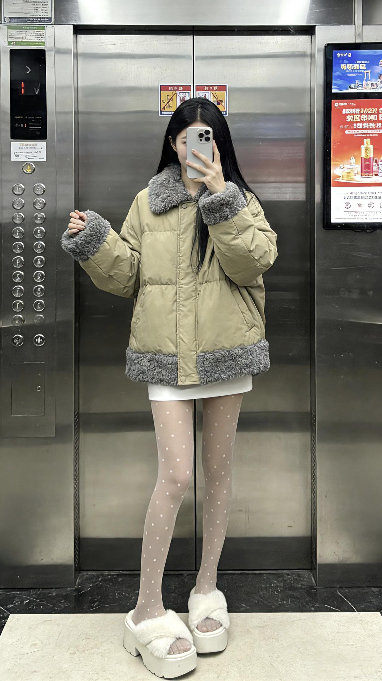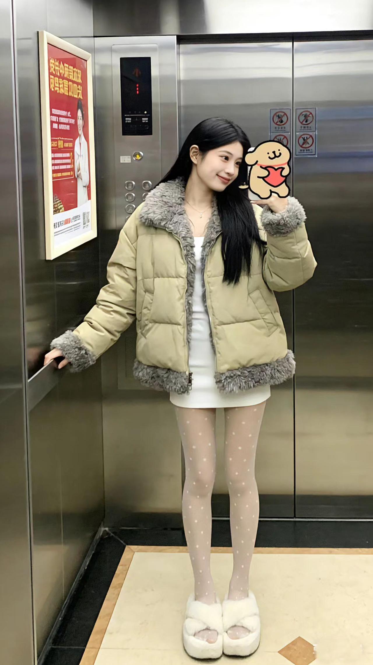 电梯拍照冬季穿搭 丝袜穿搭 辣妹穿搭 日常穿搭分享