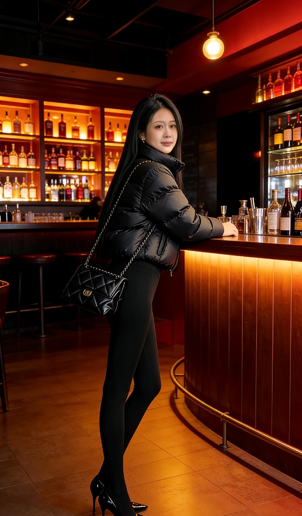 都市时尚夜生活,黑衣黑裤,酷炫酒吧风!🍷🌃