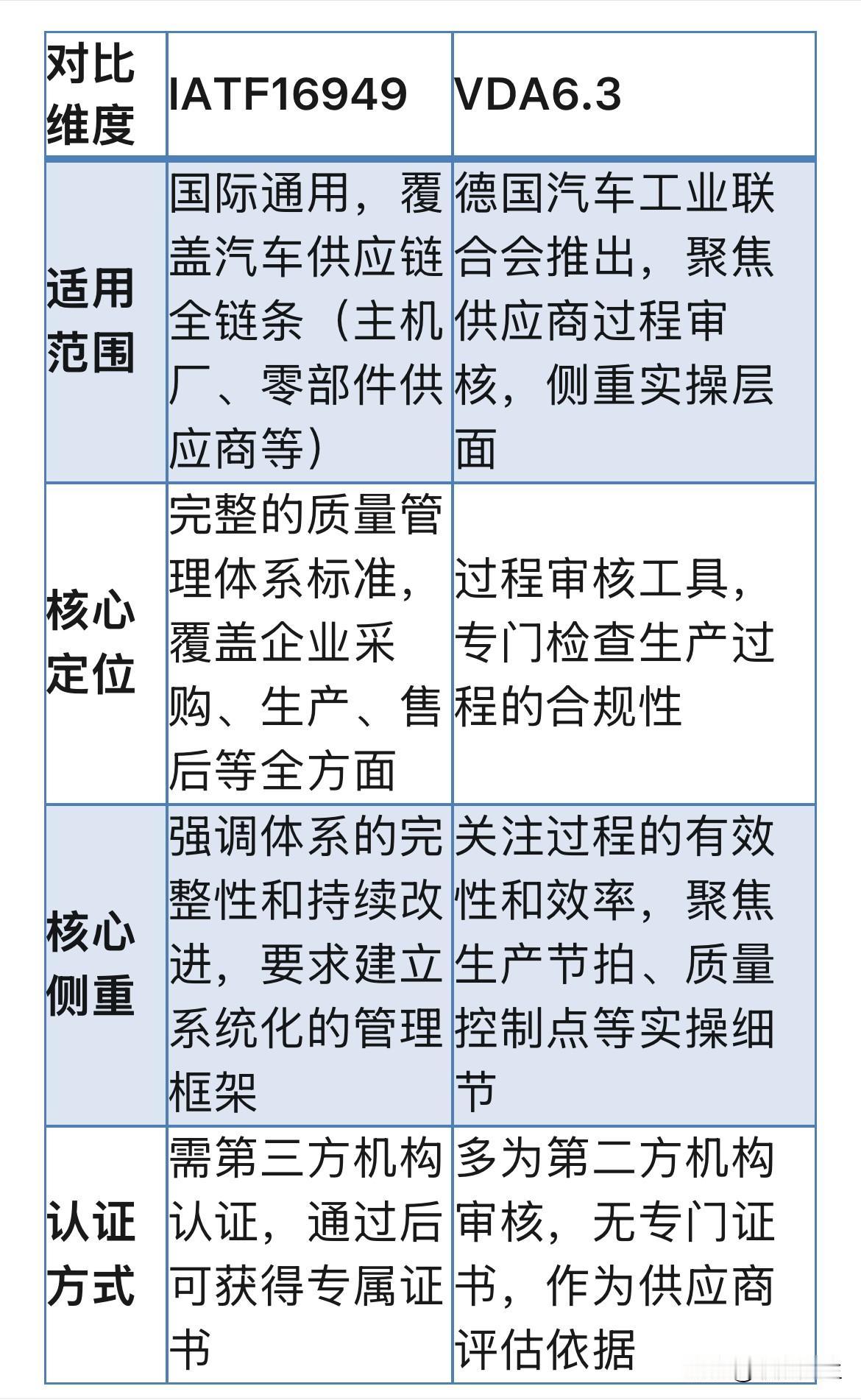 一图了解IATF 16949和VDA 6.3的区别