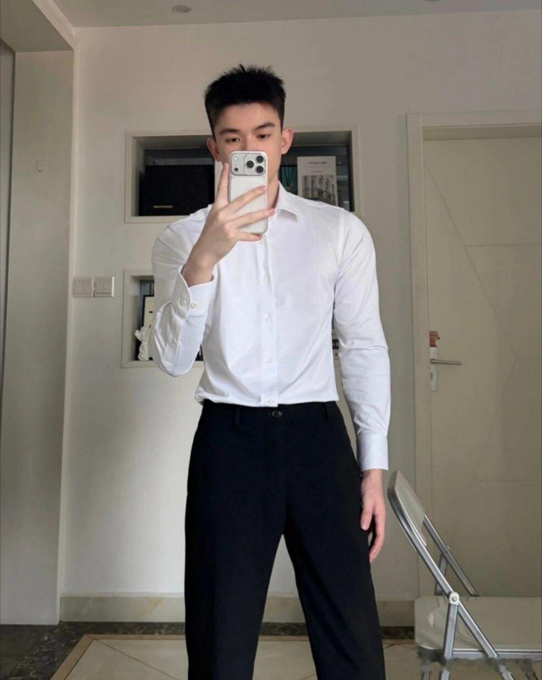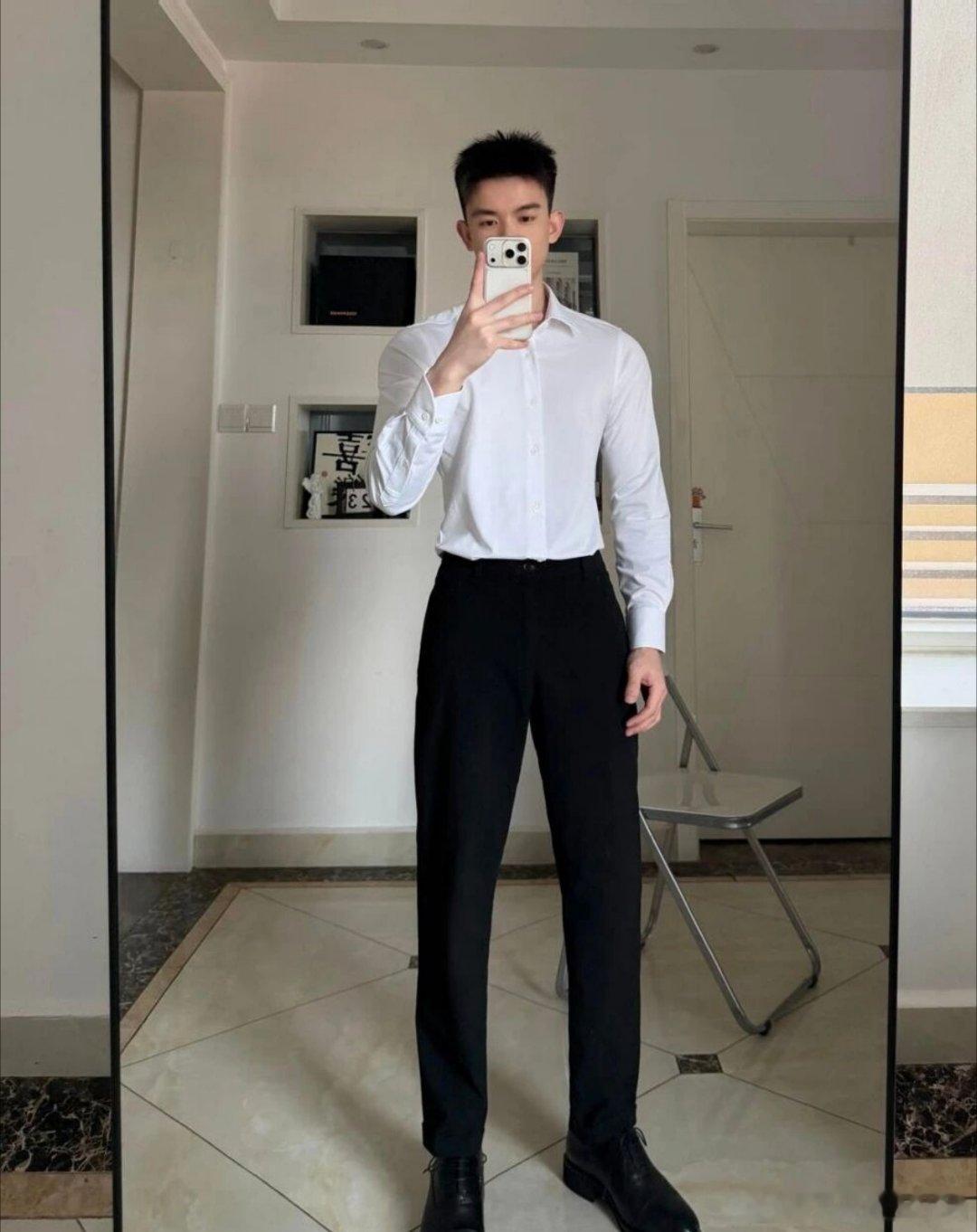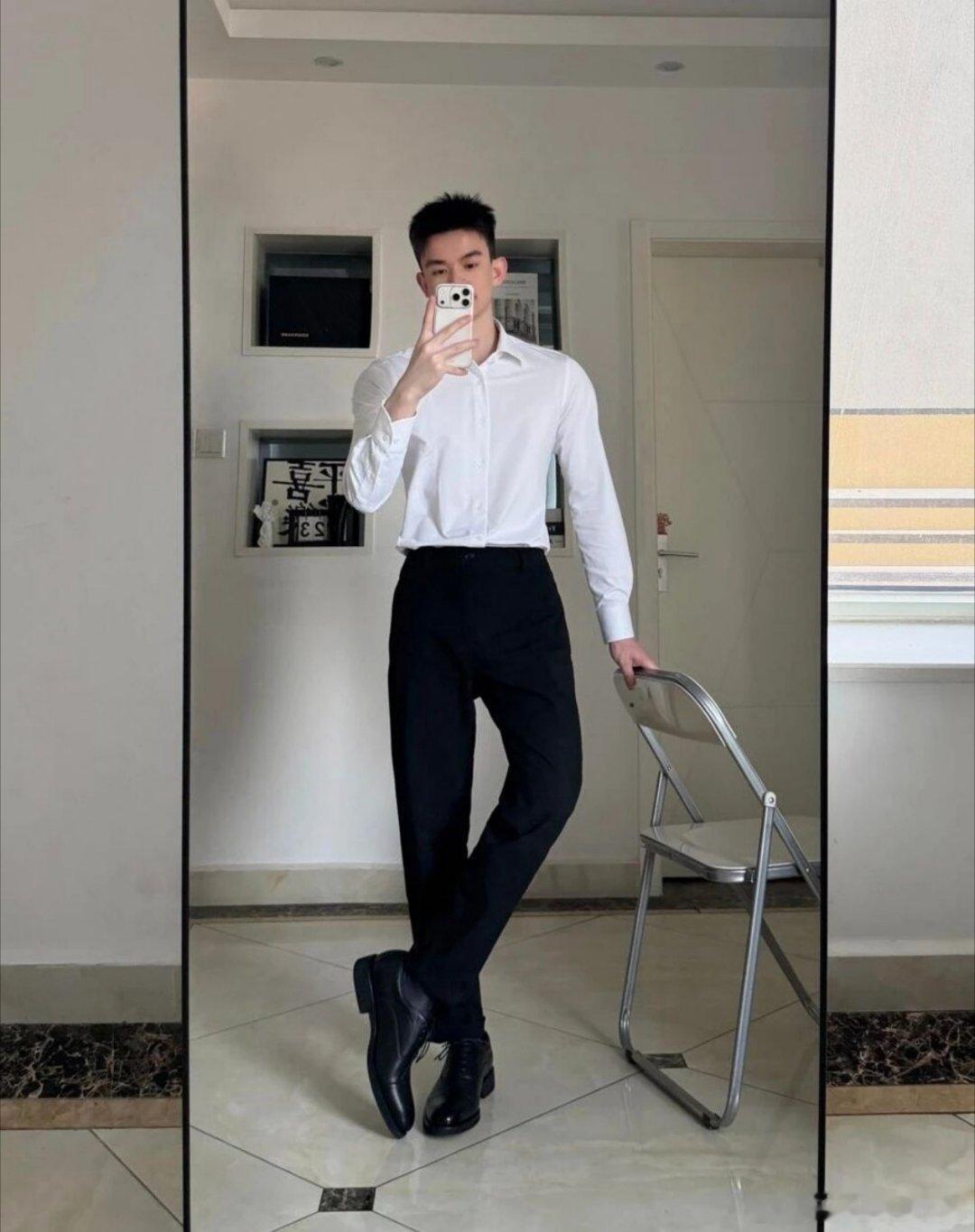 白衬衫黑裤:禁欲系男友感直接拉满男生这么穿白衬衫黑裤真的杀疯了!修身白衬衫刚好衬出肩线,不紧绷还藏着利落劲儿;黑裤垂感够足,裤脚收得刚好不拖沓;再搭双黑袜 + 皮鞋,商务感里掺了点少年的清爽 ——不是刻板的职场装,是 “约会 / 通勤都能直接套上” 的禁欲系男友感,往那一站就自带干净精致的滤镜,这穿搭公式直接抄作业!穿衣搭配男士穿搭职场简约穿搭职场穿搭今日穿搭通勤约会穿搭今日穿搭