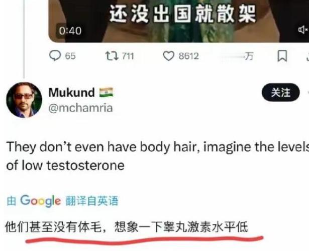 印度人曾嘲笑中国人:“中国的睾酮素水平较低,连胡子和体毛都不怎么长!”印度人被中国网红的《刚买的飞机被打了》破防后,结果找到了一个中国人不如印度的地方。 周冠豪,网名豪哥哥,出生于安徽宁国一个普通家庭。父亲从事本地贸易,让他从小接触商业环境。初中毕业后外出打工,先在超市做导购,学会观察顾客偏好。后来开小餐饮店,主营当地菜肴,但市场竞争大,两年后关门。2015年转战网络,用方言录制短视频,内容多为生活吐槽,在区域平台积累粉丝。视频控制在短时长,注重节奏。 2019年进驻抖音,组建团队,包括演员和剪辑师,在合肥租工作室。内容聚焦改编流行曲,融入国际元素,如模仿印度舞蹈。粉丝从百万级增长到千万,代表作多用宝莱坞风格。2025年5月前,代言本地品牌,团队扩展到多人,专注音乐改编和剧情表演。账号IP显示安徽,视频总数超三百,吸引一千六百万关注者。 歌曲首发抖音后,迅速传到国际平台。团队穿印度服饰,涂黑脸,头戴头巾,用改编Tunak Tunak Tun旋律反复唱“刚买的飞机被打啦,九十亿白花”。这指向2025年5月印巴克什米尔冲突,巴基斯坦用中国歼-10C发射导弹击落印度多架战机,包括阵风、苏-30和米格-29。印度空军损失至少六架,飞行员部分被俘。国防部长承认雷达故障和战术失误。 印度采购36架阵风,花费约78亿欧元,每架超2亿欧元。交付两年后在实战中暴露问题,地勤维护和训练不足成主因。巴基斯坦公布残骸照,强调歼-10C作用。印度军方初否认,后承认损失。网友先抗议视频丑化国家,要求下架,但播放量激增。 部分印度用户转攻中国人生理,TikTok上发视频嘲笑东亚男性体毛少是睾酮不足。推特话题“中国男人睾酮低”冲趋势,帖子对比印度浓密胡须与中国光滑皮肤。有人称“他们长不出胡子,怎么打仗”。这些源于印度文化崇拜雄性气质,宝莱坞英雄常有络腮胡。 科学上,东亚人体毛少系基因决定,毛囊敏感度低,与睾酮无关。中国男性睾酮平均值高于许多国家。印度帖子忽略事实,坚持毛多等于强。周冠豪团队后续视频用印度口音回应,但不提生理。 印度操作暴露空军弱点,装备依赖进口,中国歼-20批量服役,自研领先。网友用生理找优越,帖中重复“睾酮高,我们猛”。冲突中巴方预警系统锁定阵风,印度情报失估射程。 歌曲引发印度外交部宣布对周冠豪永久入境禁令,指损害印中关系。印度媒体如时报报道,称视频激起不满,网友抵制其代言品牌,广告下架。 巴基斯坦用户翻唱歌曲,加入本地元素,庆祝胜利,播放量千万。周冠豪团队继续国际题材,粉丝升至一千六百万,总播放超十亿,但平台审核加严。印度社会偏好情绪发泄,军力差距未变,空军依赖法国升级阵风。