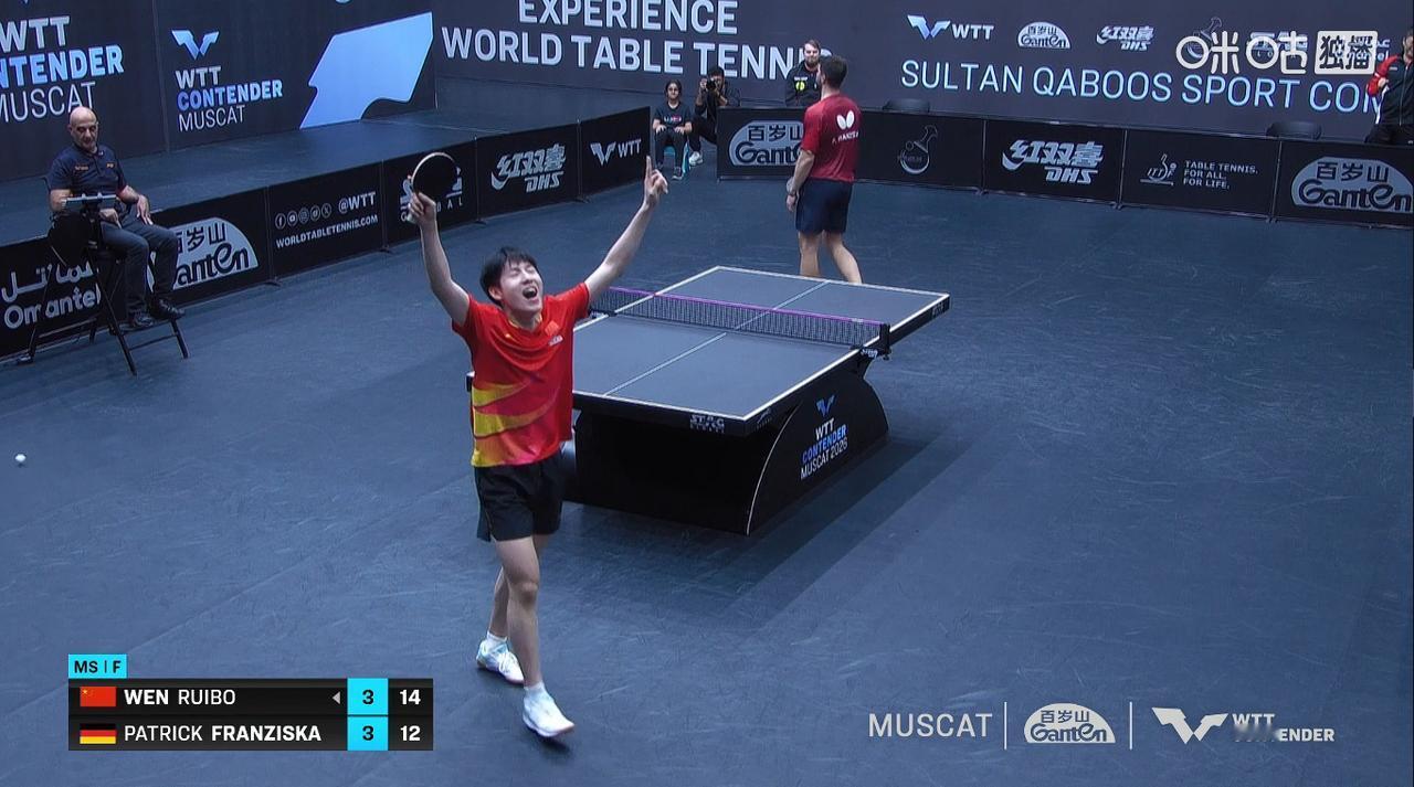 中原“莽夫”笑到了马斯喀特常规赛的最后呀,恭喜小将温瑞博![呲牙] 不得不说,温瑞博和弗朗西斯卡的这场男单决赛,真是一场苦战! 小温大比分3-1领先,还想着他这次发挥超常,搞不好能4-1拿下比赛。 谁知道,弗朗西斯卡也不是省油的灯!愣是追到了3-3! 一到决胜局,就替小温捏一把汗了,他之前好几次都是到决胜局就顶不住。 虽然后面2局都是一直平分到爆分才拿下。不仅对技战术的考验,更是对心态有很大的考验。 还有小温顶住了,这一次竟然是18岁的中原“莽夫”战到了最后! 场外的志强功不可没,整场一直听到他的声音,还好现在场外提醒已经符合规则了,不然都担心志强会被请出去。 WTT常规挑战赛马斯喀特站-男单决赛 温瑞博🇨🇳4-3帕特里克·弗朗西斯卡🇩🇪【11-5,11-8,16-14,9-11,8-11,10-12,14-12】 恭喜温瑞博🇨🇳获得WTT常规挑战赛马斯喀特站男单冠军🥇🎉 帕特里克·弗朗西斯卡🇩🇪获得WTT常规挑战赛马斯喀特站男单亚军🥈