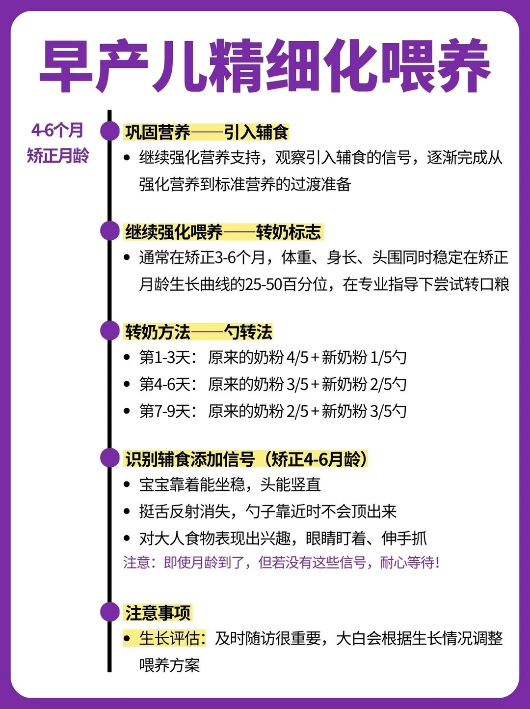 早产儿精细化喂养(0-3、4-6、6-8、9-12矫正月龄)