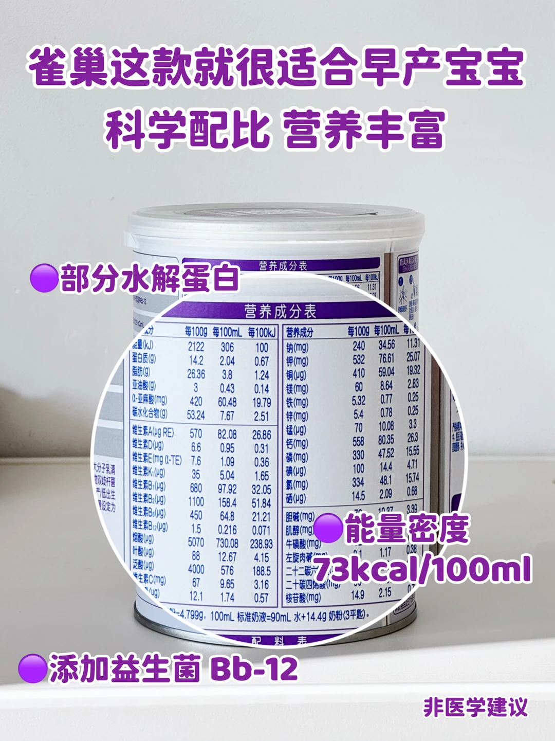 因为宝宝提前报道,肚肚环境以及对营养的需求都比较特殊,口粮选择一定要选择高营养密度、易吸收的,帮助宝宝茁壮成长!我给宝宝选的是雀巢的~