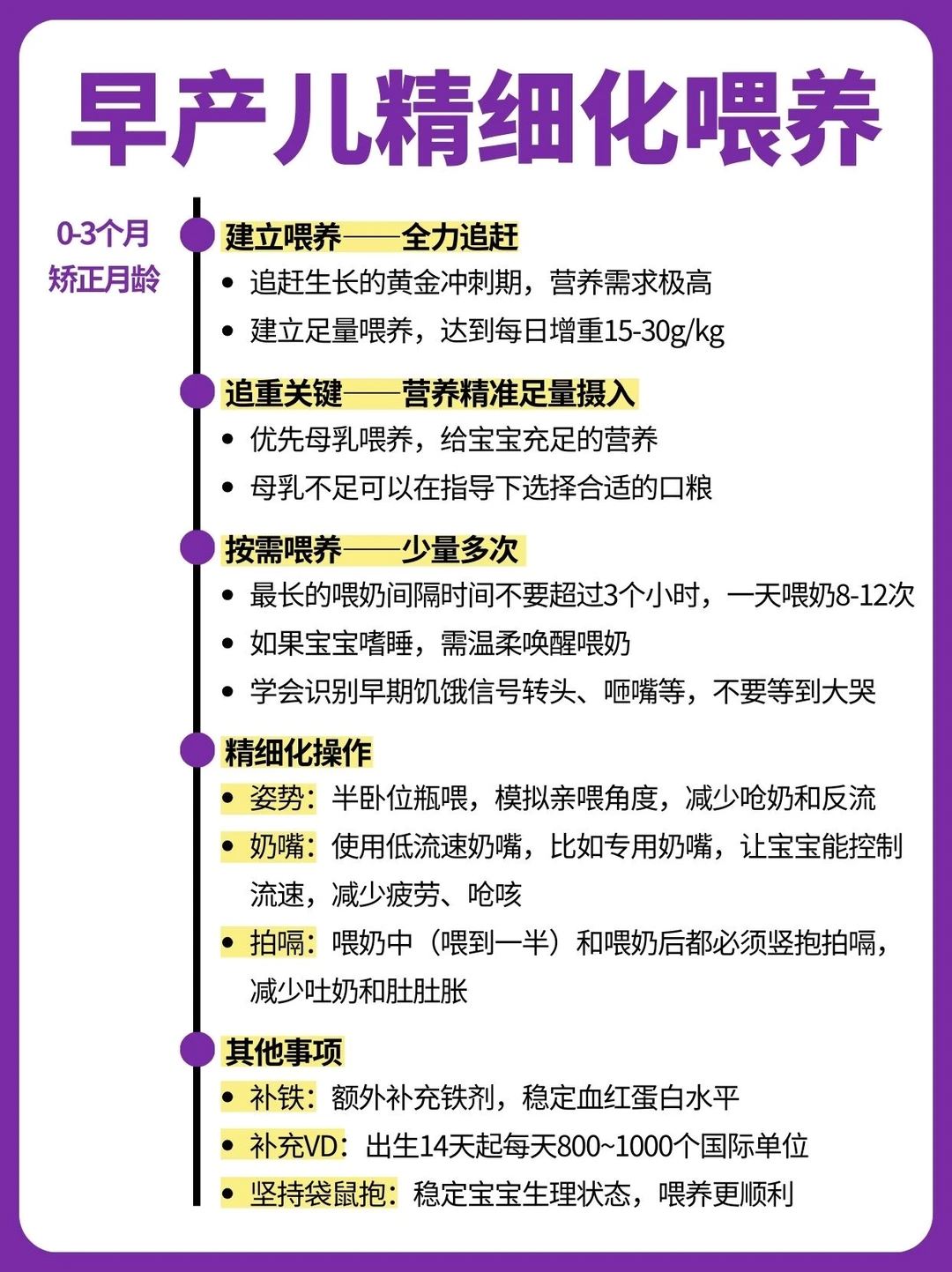 研究了WHO、《早产儿家庭养育百问百答》等资料发现,早产儿的护理重点其实主要是科学喂养、良好作息、互动早教,其中科学喂养尤为重要。