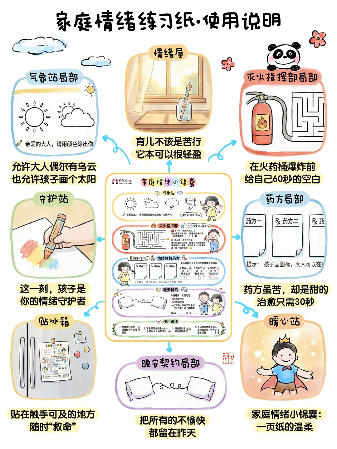 那些积灰的育儿书 那些听不完的长课程 其实都在无形中给你加压 大叔想做的 是给你“减负” 这份研发已久的 [极简一页纸] 今天正式和你见面 不讲大道理 不增加新任务 当你觉得“快要炸了”的时候 把它从冰箱上揭下来 和孩子玩一次迷宫 讨一个暖心的抱抱 简单两步 就能把火气慢慢抚平 火灭了,爱才看得见 🎁 【限时福利】 评论区留言 “抱抱”🌟 大叔私你高清原件哦~ 就一页,没压力,今晚就能用